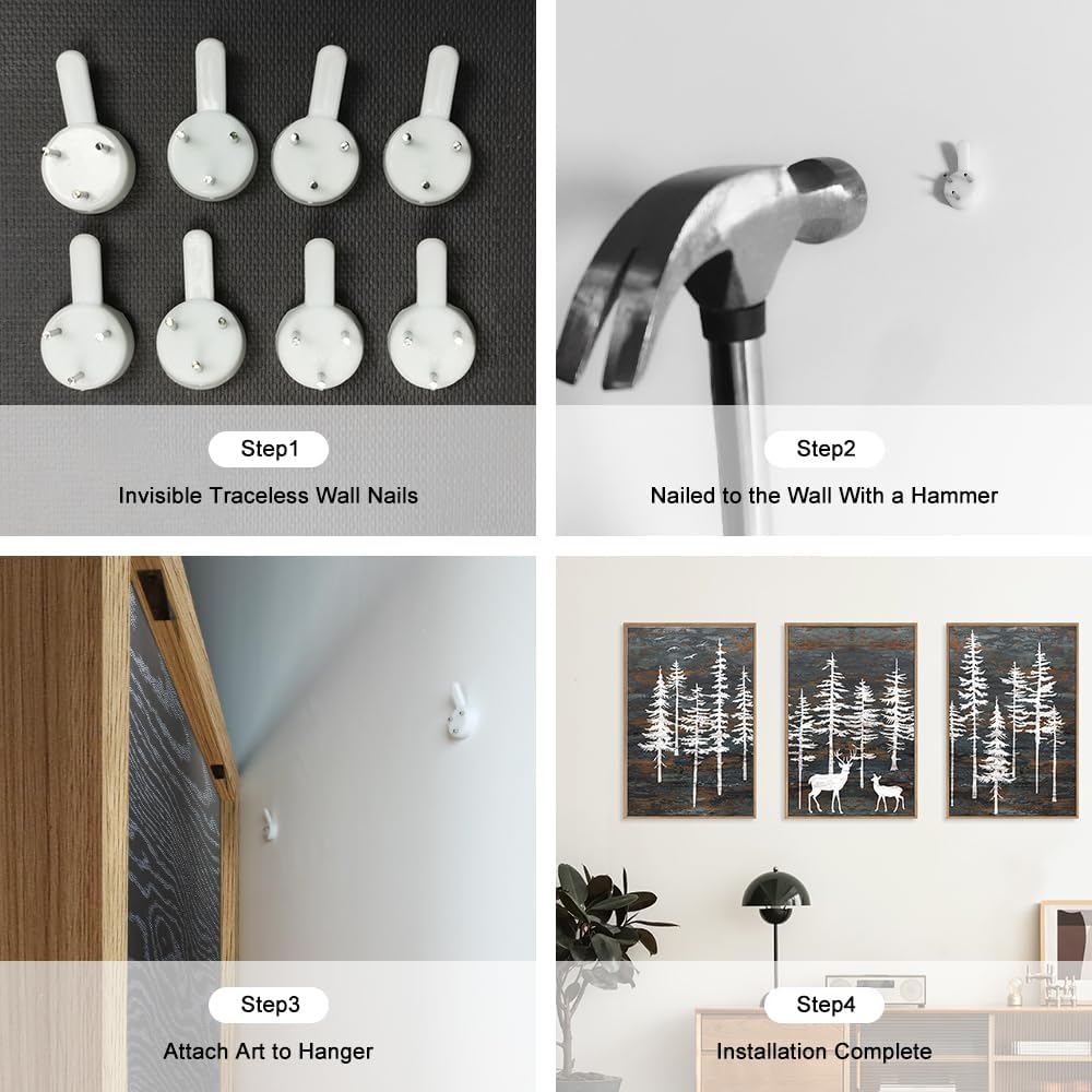 • 【White Forest Wall Art】This forest animal decor art set is a favored selection among individuals seeking to augment the aesthetic charm of their living quarters. The piece showcases a monochrome color scheme that evokes a jungle vibe against a wooden backdrop, culminating in a harmoniously balanced and deeply moving visual theme. Regardless of whether you opt to display this artwork in your lounge, sleeping quarters, or workplace, its composition and hues will contribute to a tranquil and visually gratifying environment.