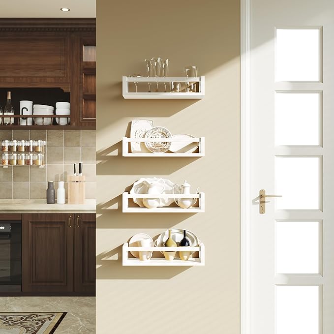 Upgraded Thick Floating Shelves - Multi-Use Wall-Mounted Bookshelves for Kids and Nursery, Ideal for Books, Toys, Spice Rack, Decor - White