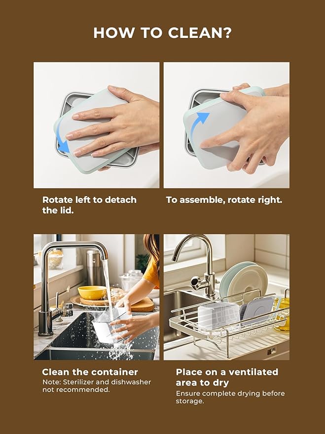 • Easy to Clean, Hand Wash Only: Designed for easy disassembly and cleaning, these air tight storage containers for food are not dishwasher safe. Hand wash only to maintain long-lasting use