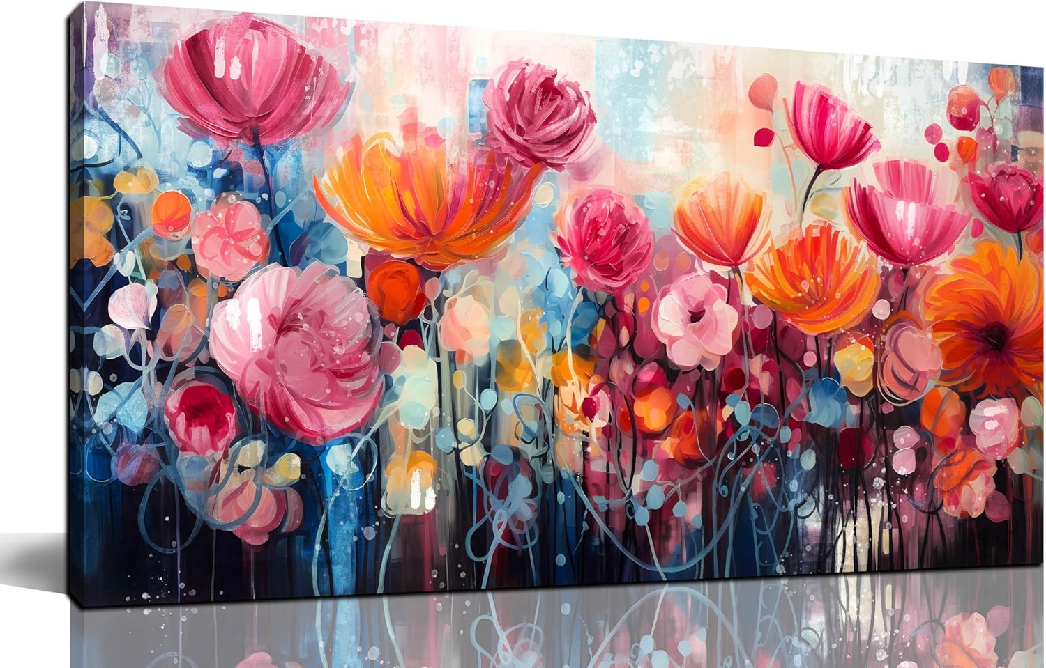 • Floral WALL ART CANVAS: The theme of this wall art prints is "Pink Flower". It make your room more personalized. There are many themed art wall decor in our store, such as cute animals, flowers, abstract art, graffiti, etc