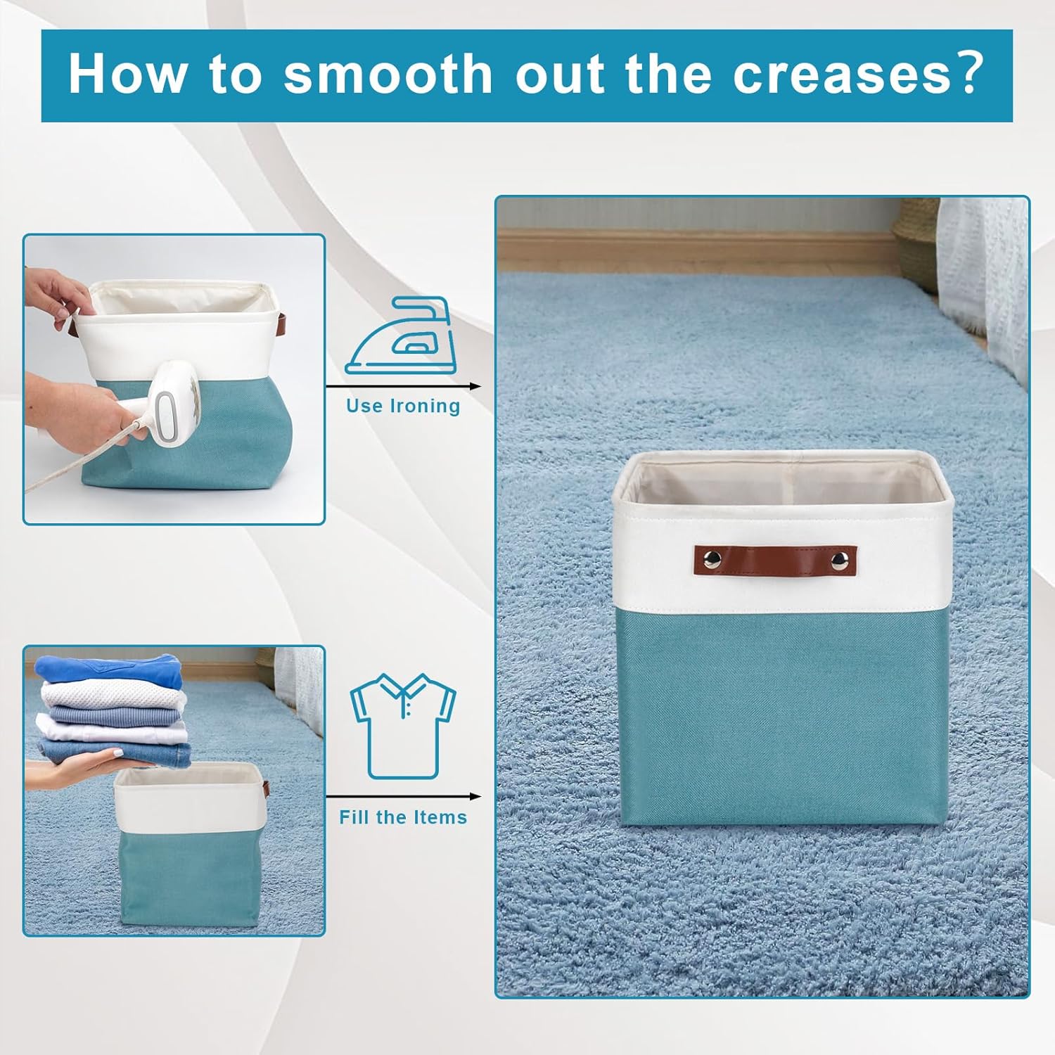Collapsible Fabric Storage Cubes 11x11 Cube Storage Bins, 4 Pack Closet Baskets Box with Handles for Organizing, Shelf, Toys, Clothes, Home, Office, Nursery (Teal&White)
