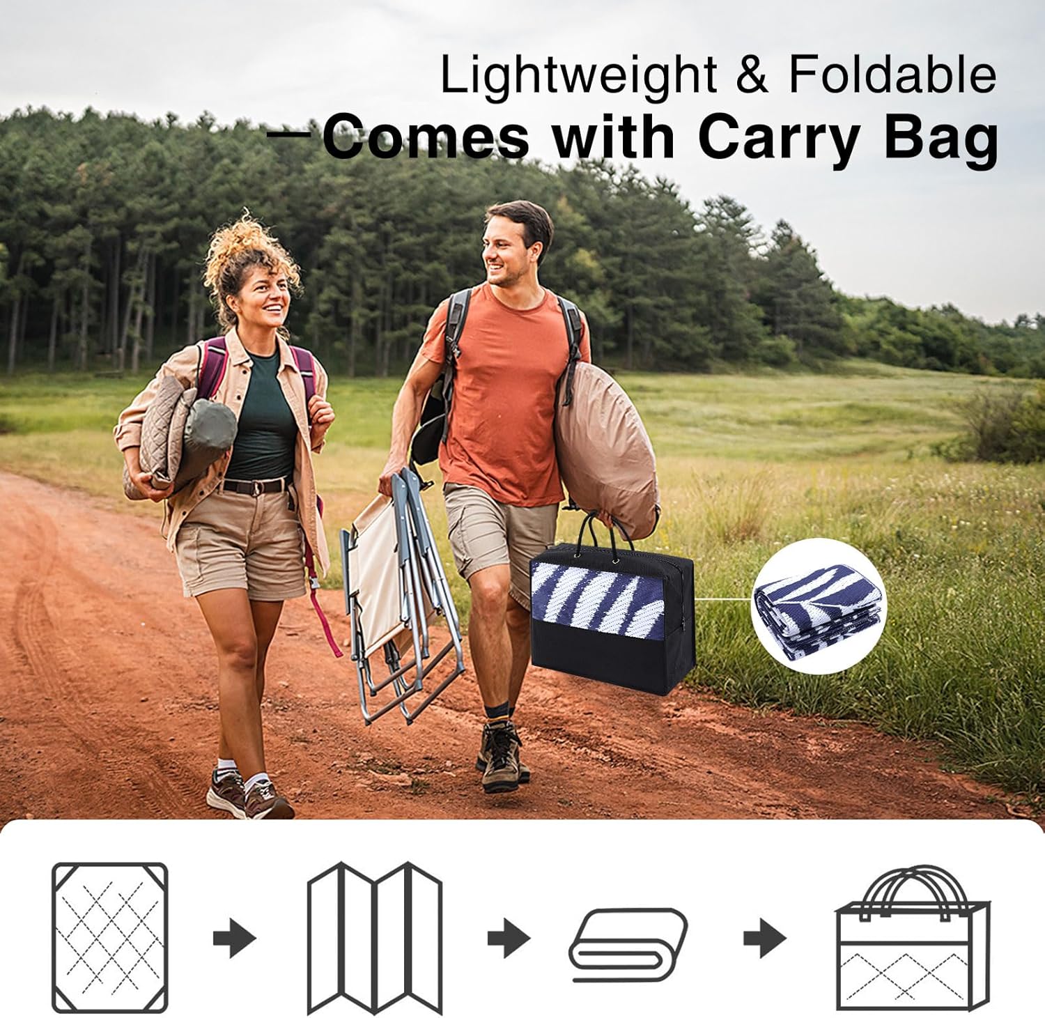 • Portable & Convenient: Lightweight and foldable, our waterproof rugs are easy to transport and store, making them ideal for travel and camping. They even come with a matching carry case for effortless portability.