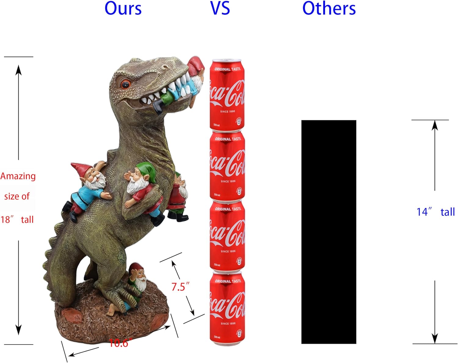 • Vivid. This statue is well-made and good-looking, even the gnomes are meticulously crafted, while other products are blurred. The dinosaur is strong. The whole statue is solid.