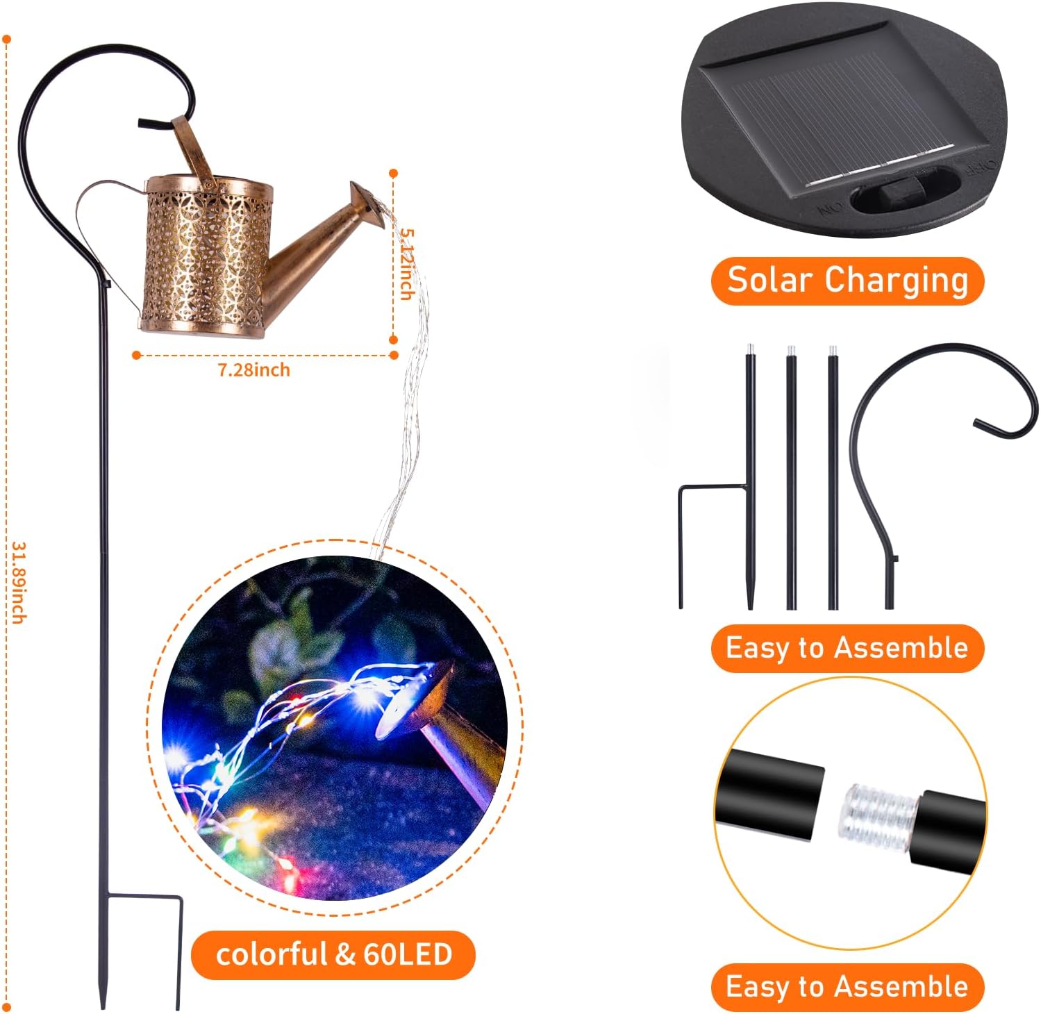 • IP65 Waterproof: Solar watering can light crafted with premium rust-resistant metal and IP65 waterproof rating. These solar lights can withstand rain, snow and extreme temperatures, making them a great choice for outdoor garden decorations.
