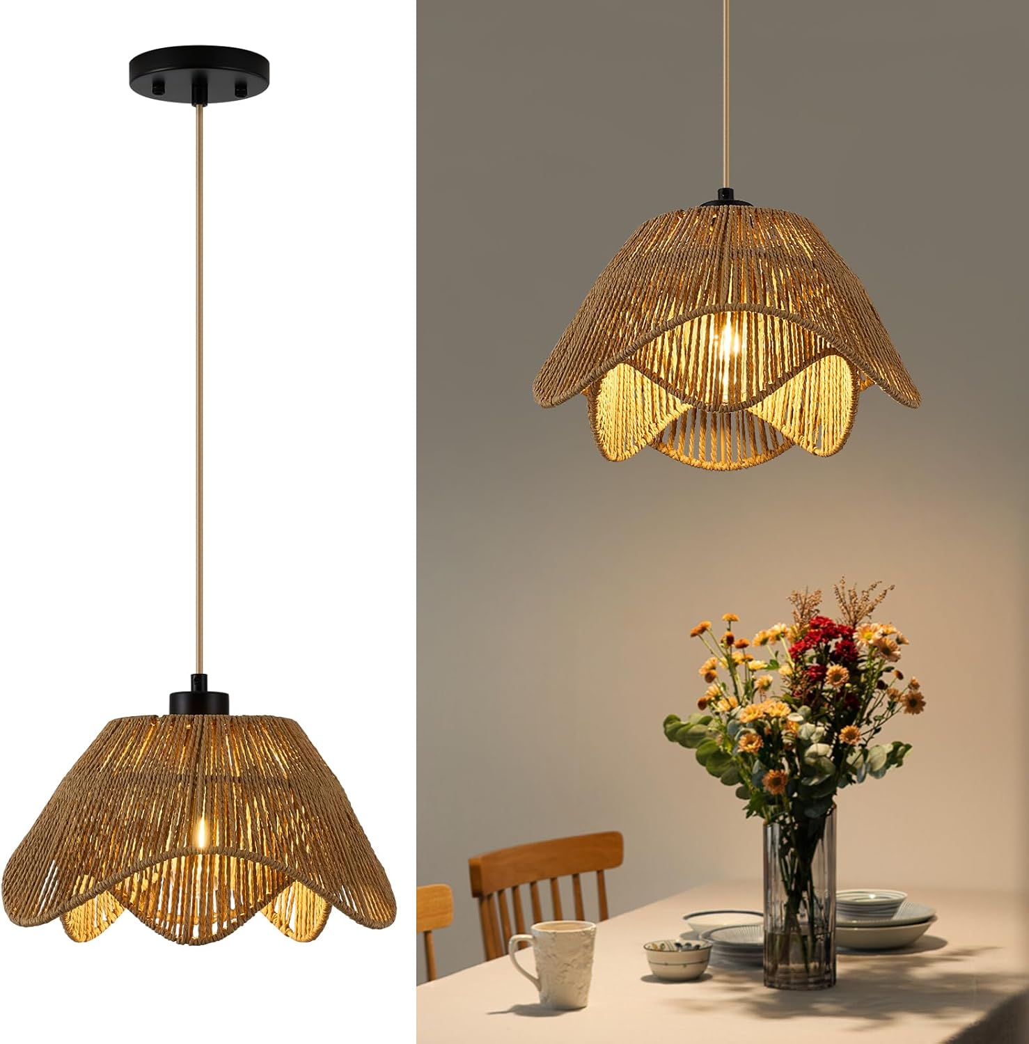 • 【Easy to Install】Boho pendant light includes all mounting hardware and instructions for a simple construction that is basically already assembled. Simply attach the shade to the base and screw in the bulb to bring a nature element to your home.