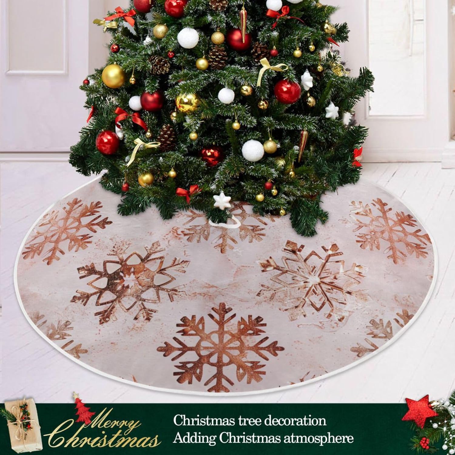 Christmas Tree Skirt, 36 Inch Rose Gold Snowflakes Pattern Xmas Tree Skirt for Christmas New Year Party Decorations Christmas Tree Mat