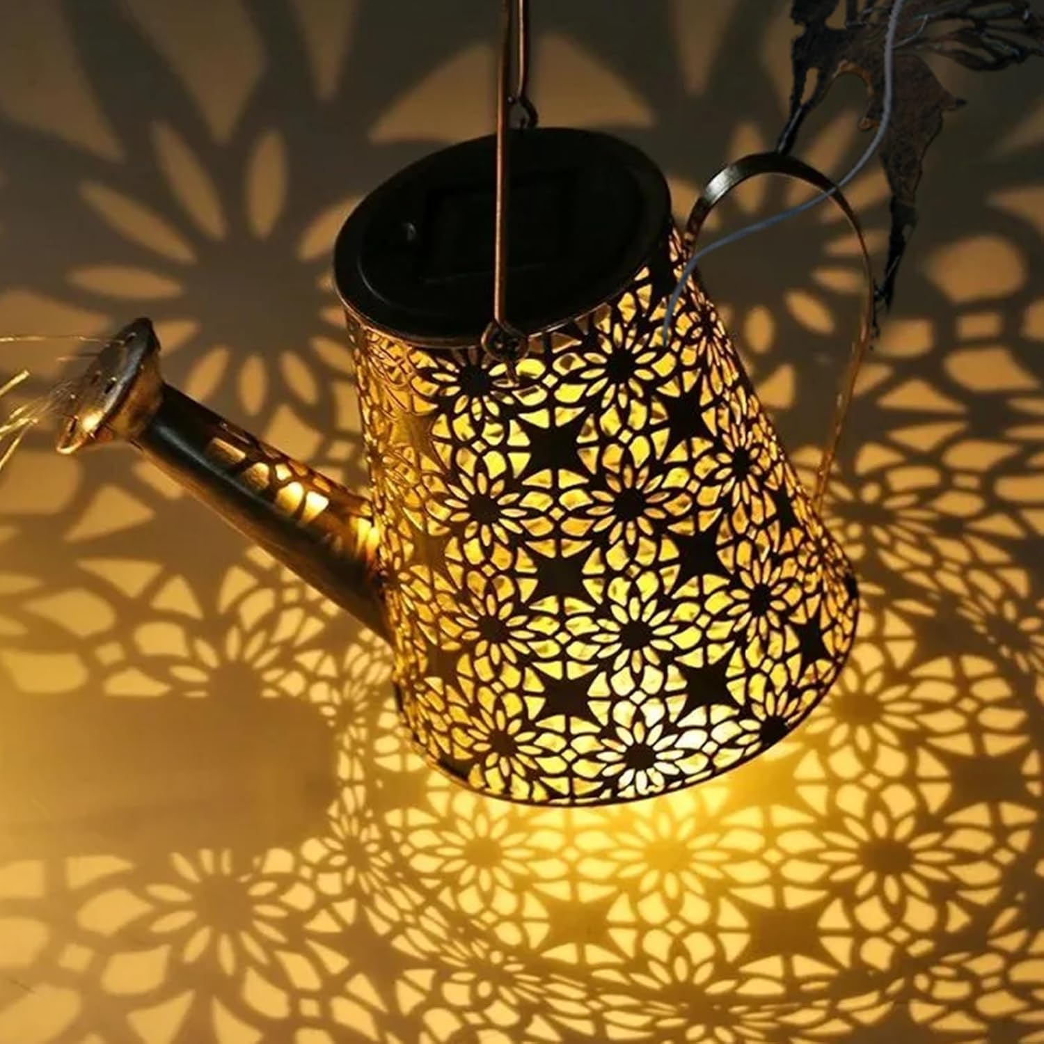 • Creative Garden LED Light: This solar watering can light features a unique hollow watering can design with flexible LED string lights that can be bent to your liking. Perfect for hanging on porches, pergolas, or placing on tables and windowsills, it adds a cozy glow to your yard and patio. When lit, the twinkling lights mimic water sprinkling from the can, creating a magical garden ambiance!