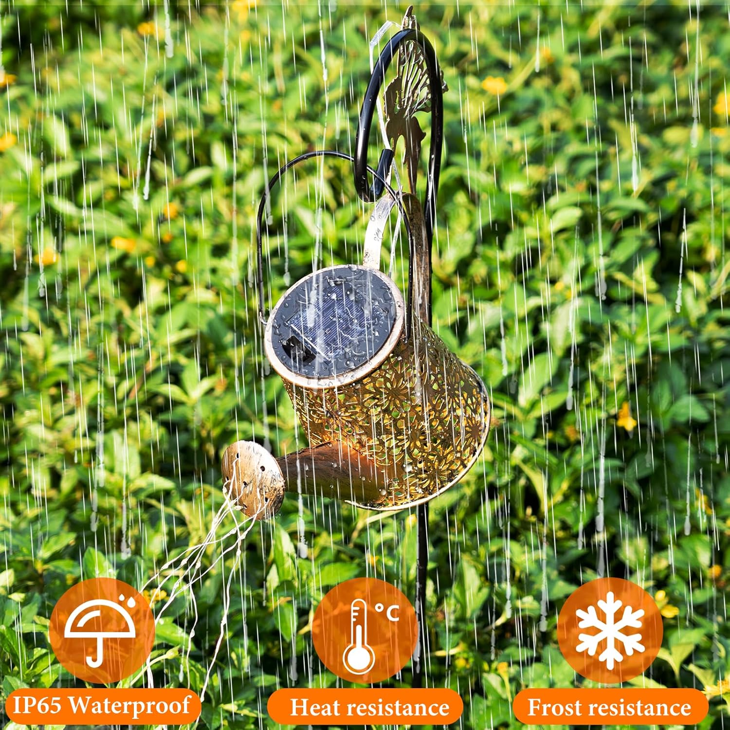 • IP65 Waterproof: Solar watering can light crafted with premium rust-resistant metal and IP65 waterproof rating. These solar lights can withstand rain, snow and extreme temperatures, making them a great choice for outdoor garden decorations.