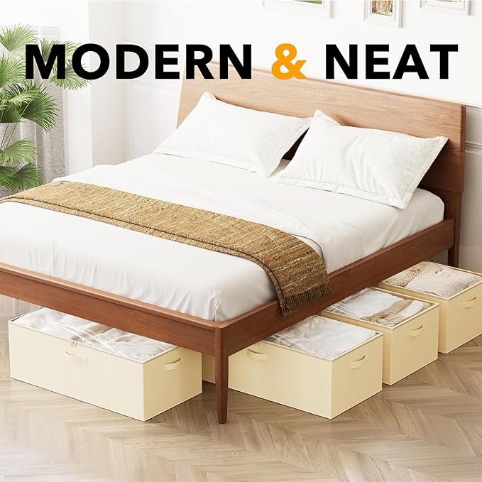 • 4 PACK BEIGE UNDER BED STORAGE - Make your underbed space neat and organized with this storage bin organizer; Each Bin SIZE: 31.5"L x 15.8"W x 10"H
