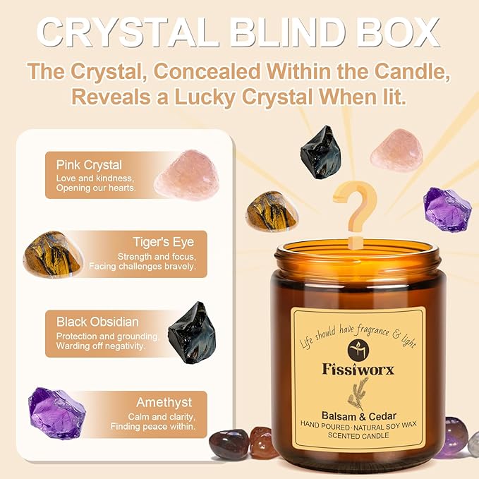 • Natural Soy Wax With Lucky Stone - Enjoy up to 60 hours of continuous burn time , proudly made with 100% natural soy wax that burns evenly. Our fragrances are paraben-free, phthalate-free, and never tested on animals. Fissiworx scents gently enhance spaces rather than overpower them, ideal for those sensitive to scents.(Our soy wax candles contain a random lucky stone that can bring good fortune to everyone. Additionally, it will not burn nor pose any danger).