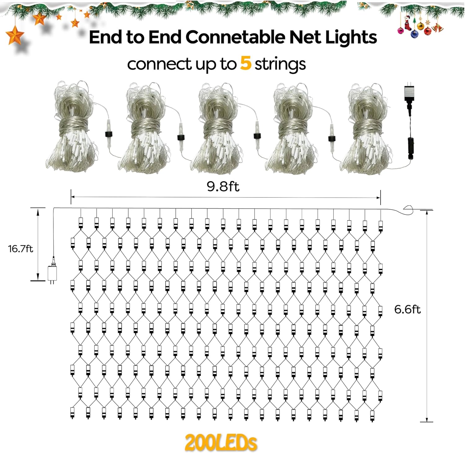 • Make Christmas Decorations Faster: Compared with traditional single string lights, our Xmas mesh string lights can greatly save our Christmas decorations time. Just unfold it gently and spread it on the bushes, grass, trees, and fences that need to be decorated, it's done! Without a lot of circles like a single string light.