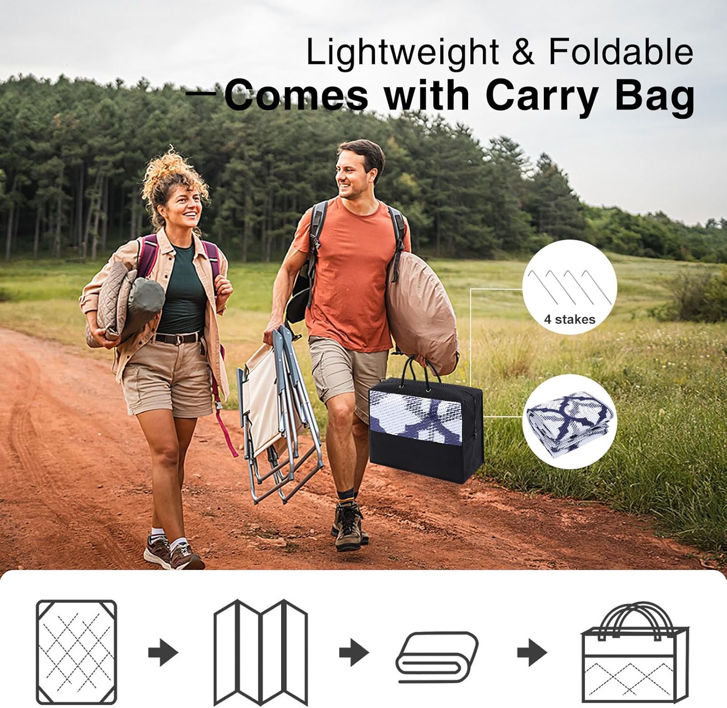 • Lightweight & Portable: Easy to fold and carry, this camping rug is your go-to for outdoor adventures. Ideal for camping trips, gatherings, or sports events, it ensures comfort and style wherever you go.