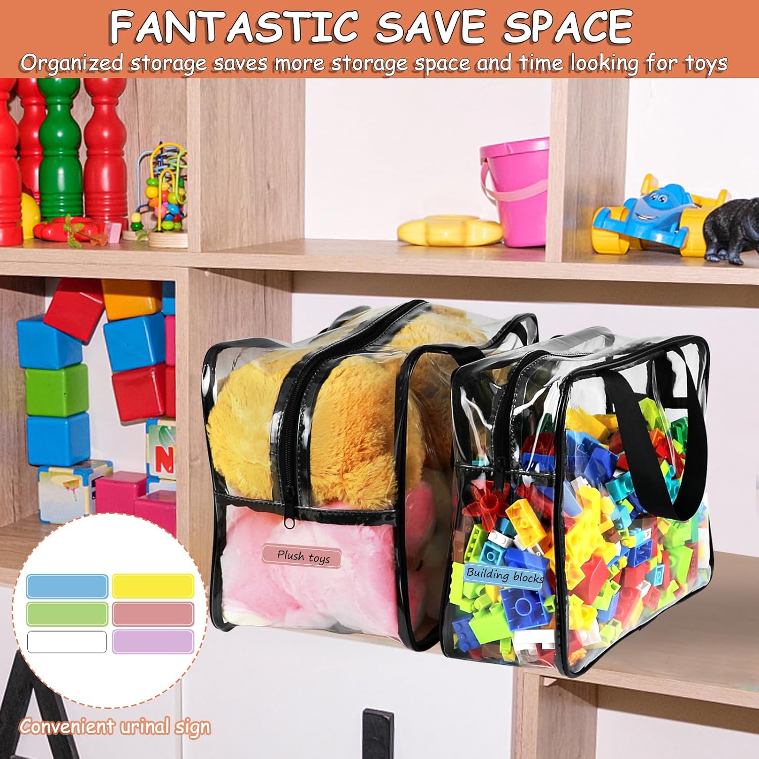 • 【Heart-Warming Design】: The toddler zipper storage bags for kids have an overall transparent design, so children can easily see and find the toys inside they want. Storage bags for toys have two handles, which have a stronger load-bearing capacity and are more sturdy for carrying toys, books, etc. when going out. Included name labels help you write names or store them in categories