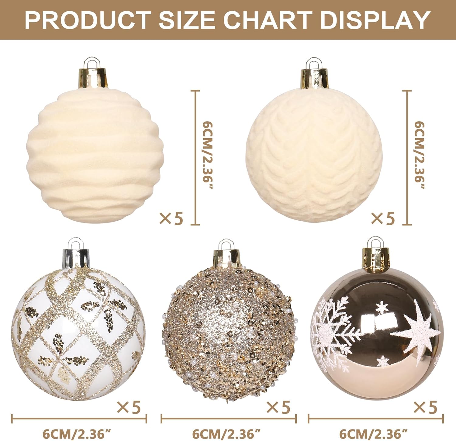 • SIZE AND QUANTITY: The size of this Christmas ball ornaments is 2.36 inches/6 cm, suitable for most Christmas tree decorations. A box of 25pcs ensures that you have enough quantity to fill the gaps in the Christmas tree.