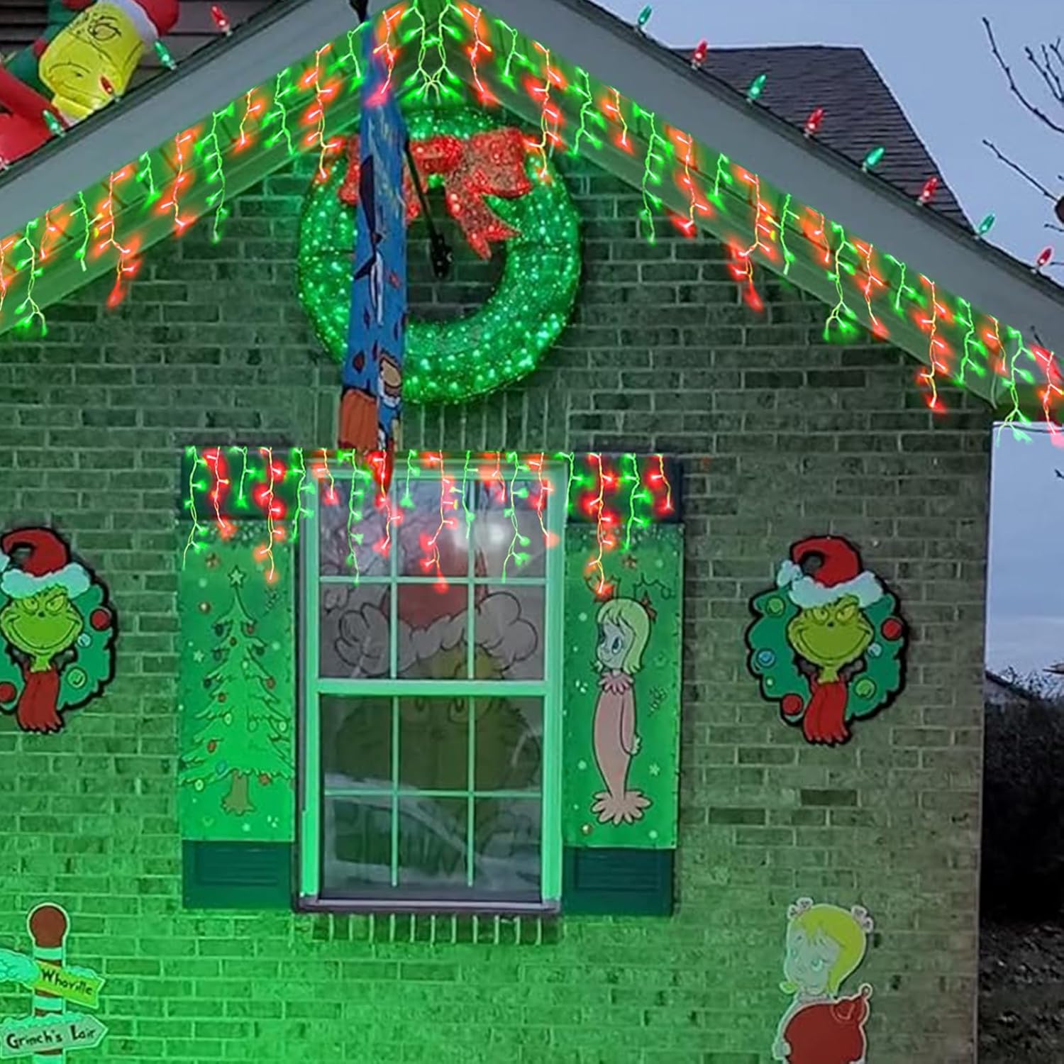 YEGUO 33ft 400 LED Red and Green Icicle Lights Outdoor Waterproof, 80 Drops Icicle String Light Connectable, 8 Modes Icicle Christmas Lights with Memory Timer