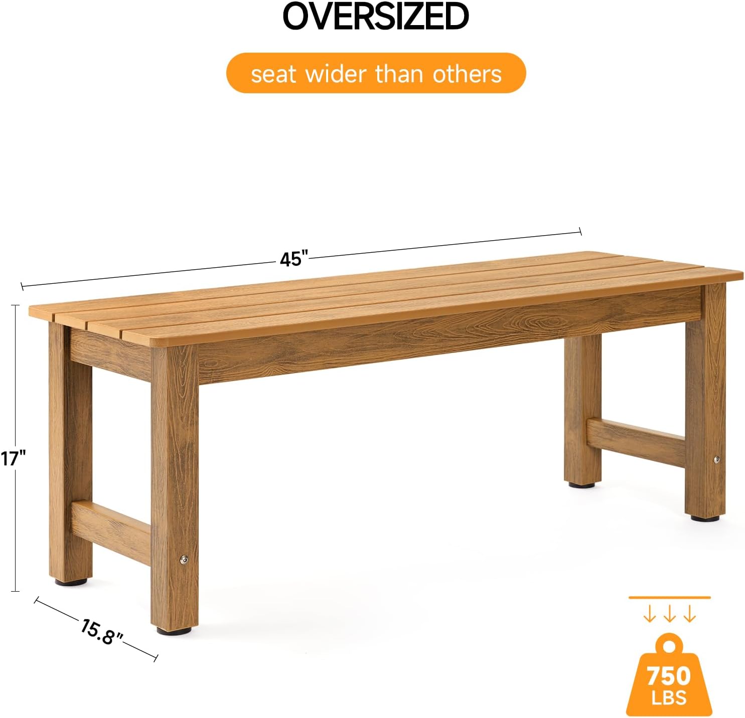 • 【Just Like Real Wood】ONBRILL garden bench adopts unique wood-like color technology, it isn't easy to distinguish between our products and high-grade solid wood. HDPS patio benches are recyclable and more durable than regular wooden chairs. It's an outdoor furniture worth investing in.