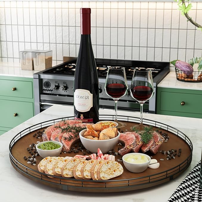 • ππ‘π„πŒπˆπ”πŒ πŒπ€π“π„π‘πˆπ€π‹: Our farmhouse lazy susan made of natural solid wood, sturdy, durable, and premium quality. It will be beautiful and a completely food-safe way to decorate your food. It is known for its durability, strength, and aesthetic, as well as it can handle heavy use and resist wear and tear.