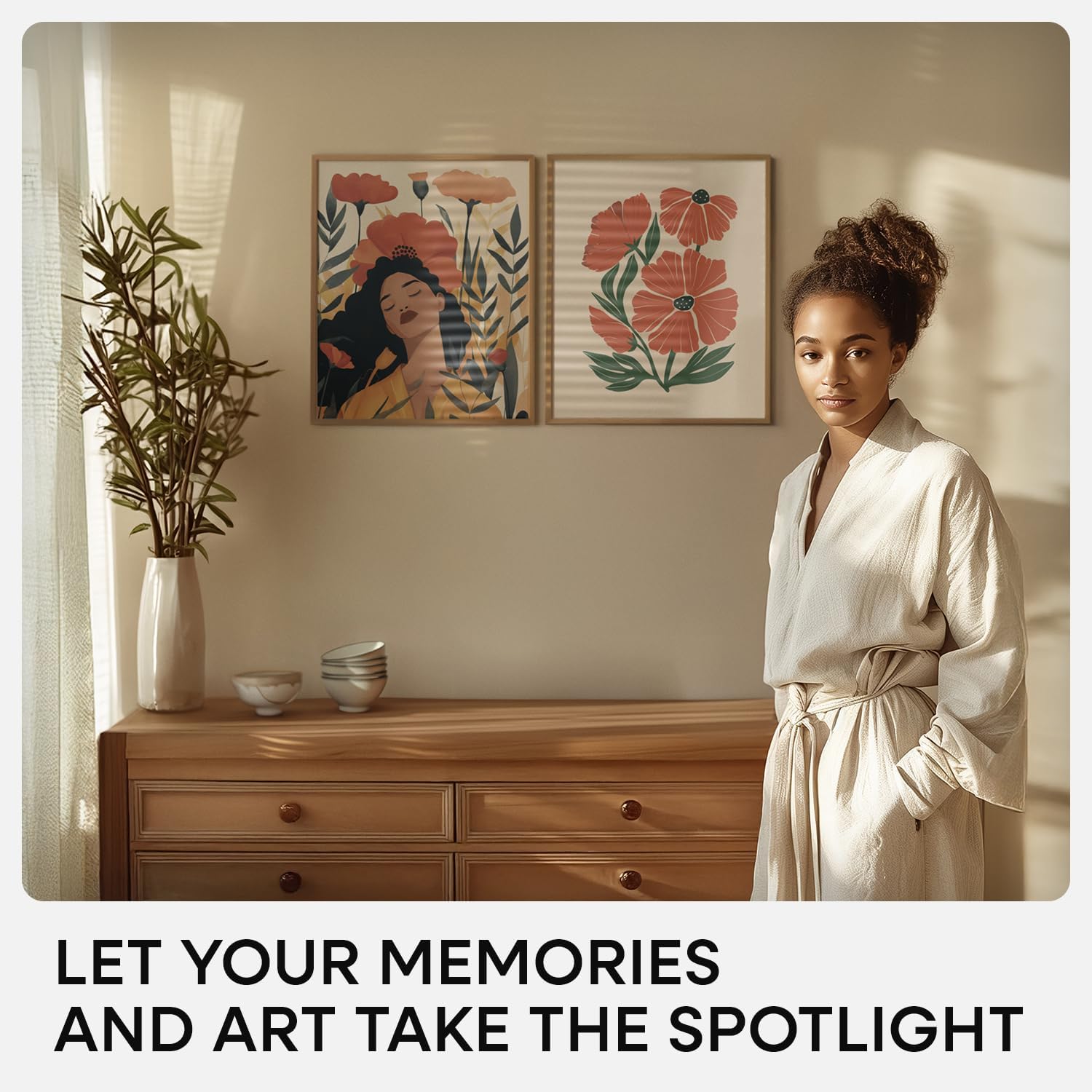 • WARM BRONZE. UNDERSTATED CHARM. Subtle and inviting, the bronze finish has a matte texture that softens light. Ideal for warm-toned photography, botanical prints, and natural materials.