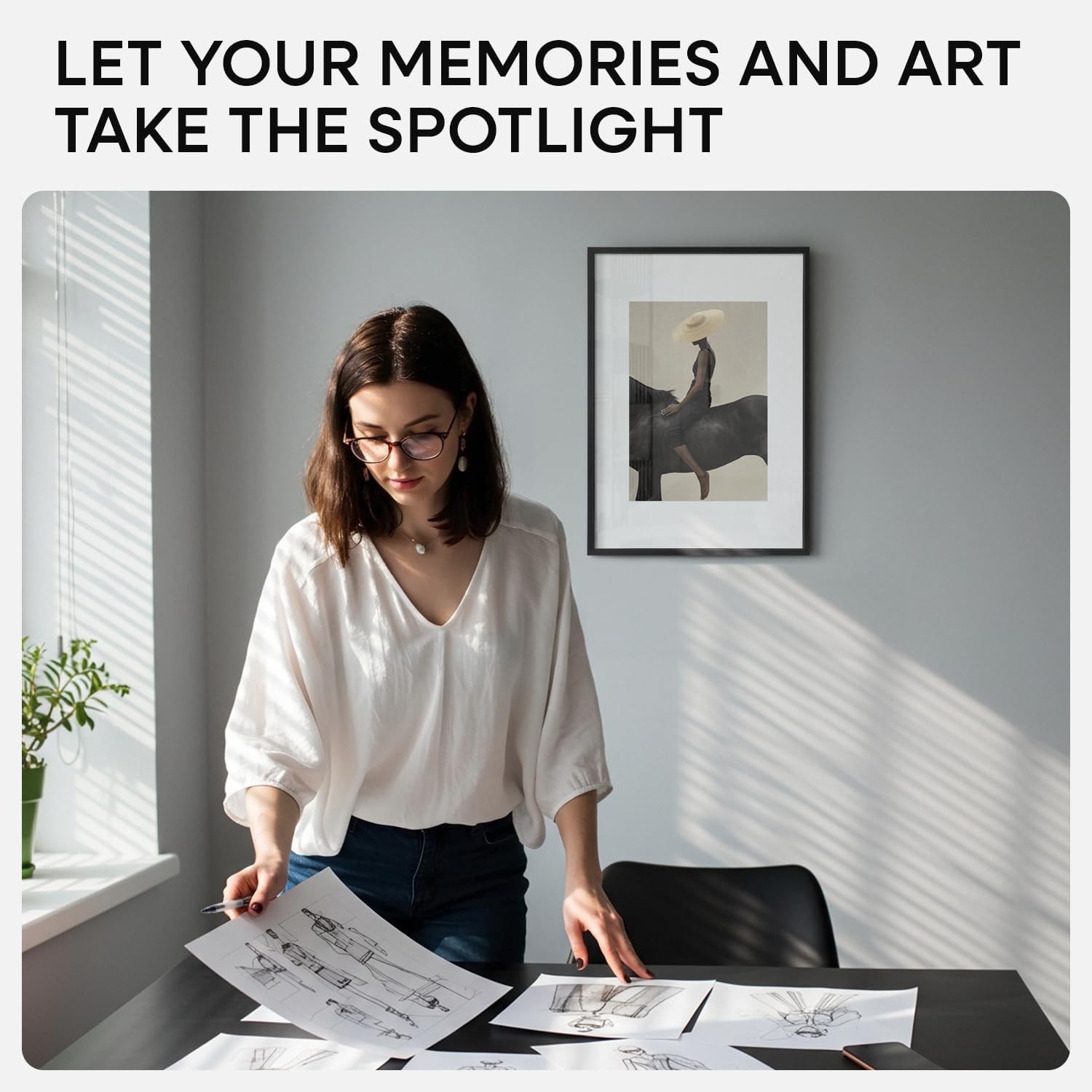 • MATTE BLACK. CLEAN AND MODERN. Defined by sharp edges and a smooth matte finish, this black aluminum frame suits contemporary, minimalist, or industrial interiors. A versatile choice for photos, prints, or posters.
