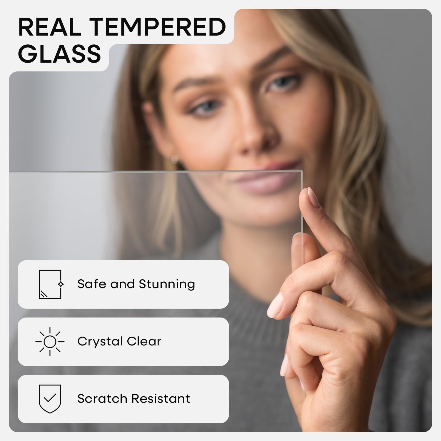 • GALLERY GRADE GLASS, TRUE CLARITY. Why settle for cloudy plexi? Our ultra-clear tempered glass sharpens every detail and adds instant polish to your photo or print.