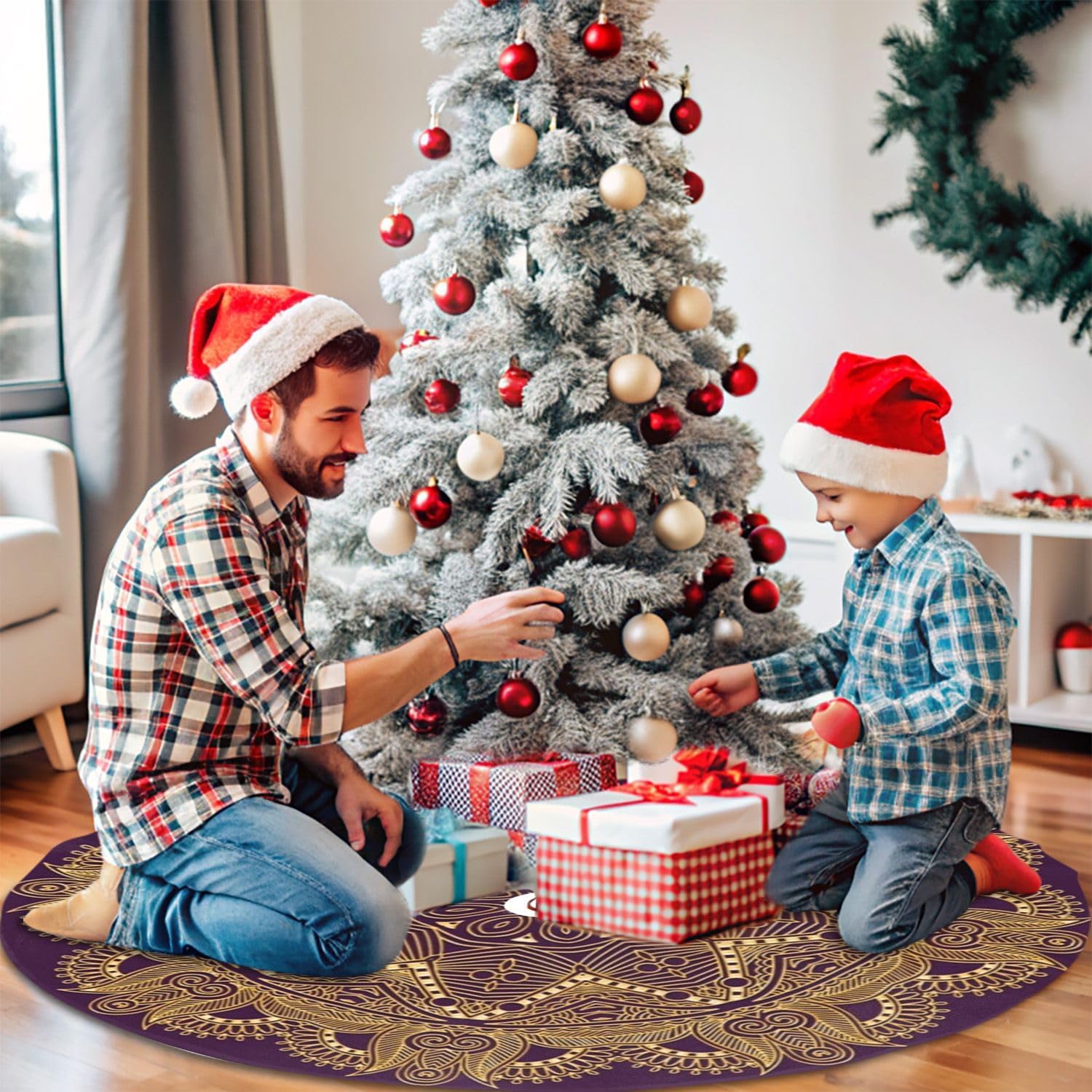 36" Dark Amethyst Purple Mandala Star Christmas Tree Skirt Tree Mat Base Cover for Xmas Festive Holiday Party Decoration Ornaments