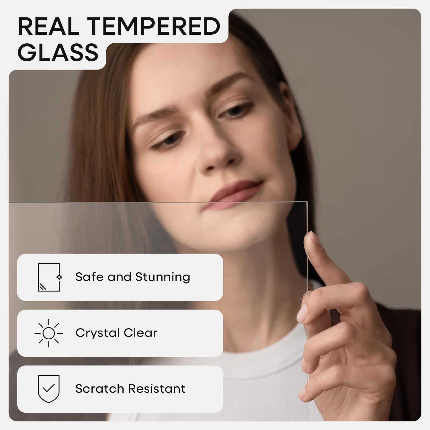 • GALLERY GRADE GLASS, TRUE CLARITY. Why settle for cloudy plexi? Our ultra-clear tempered glass sharpens every detail and adds instant polish to your photo or print.