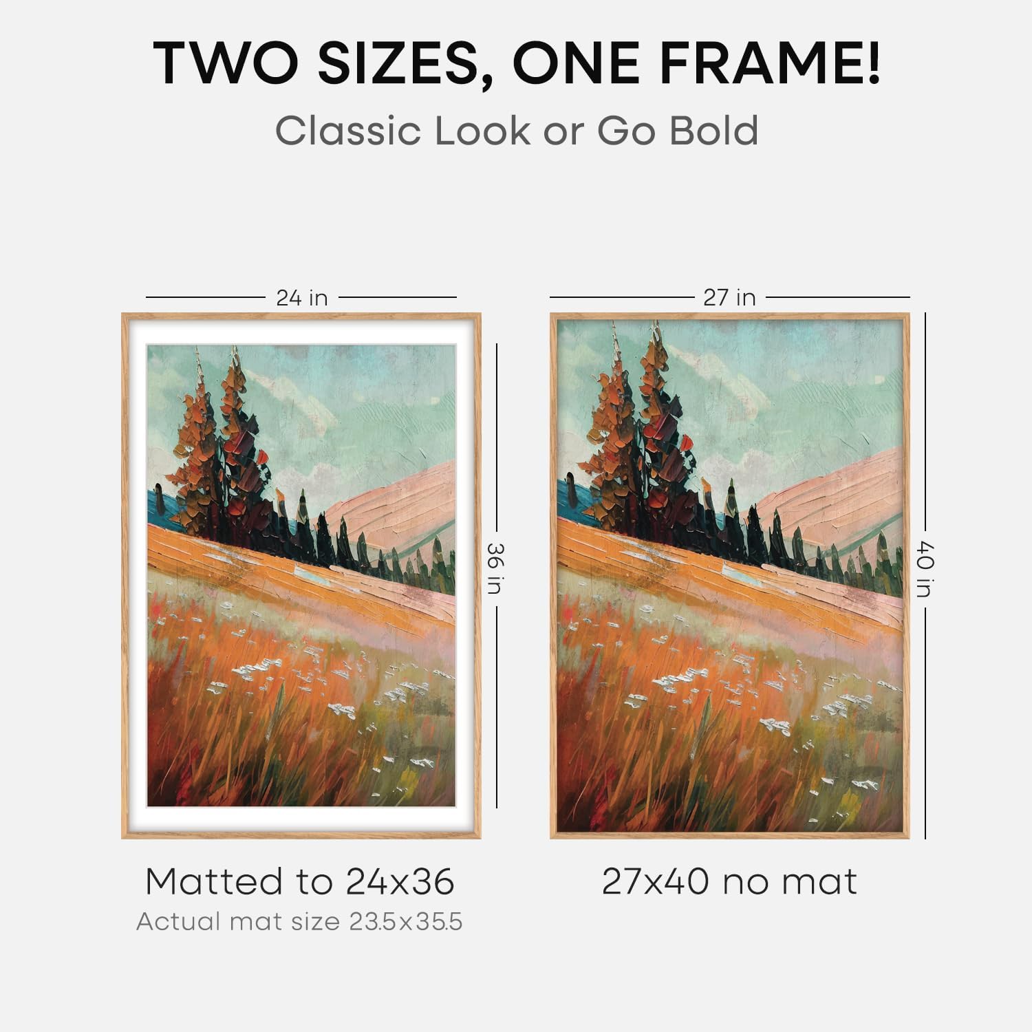 • MATTED OR EDGE-TO-EDGE—YOUR CALL. A crisp 24x36 white mat creates negative space, elevating your image with gallery precision. Or remove it for 27x40 bold, uninterrupted impact.