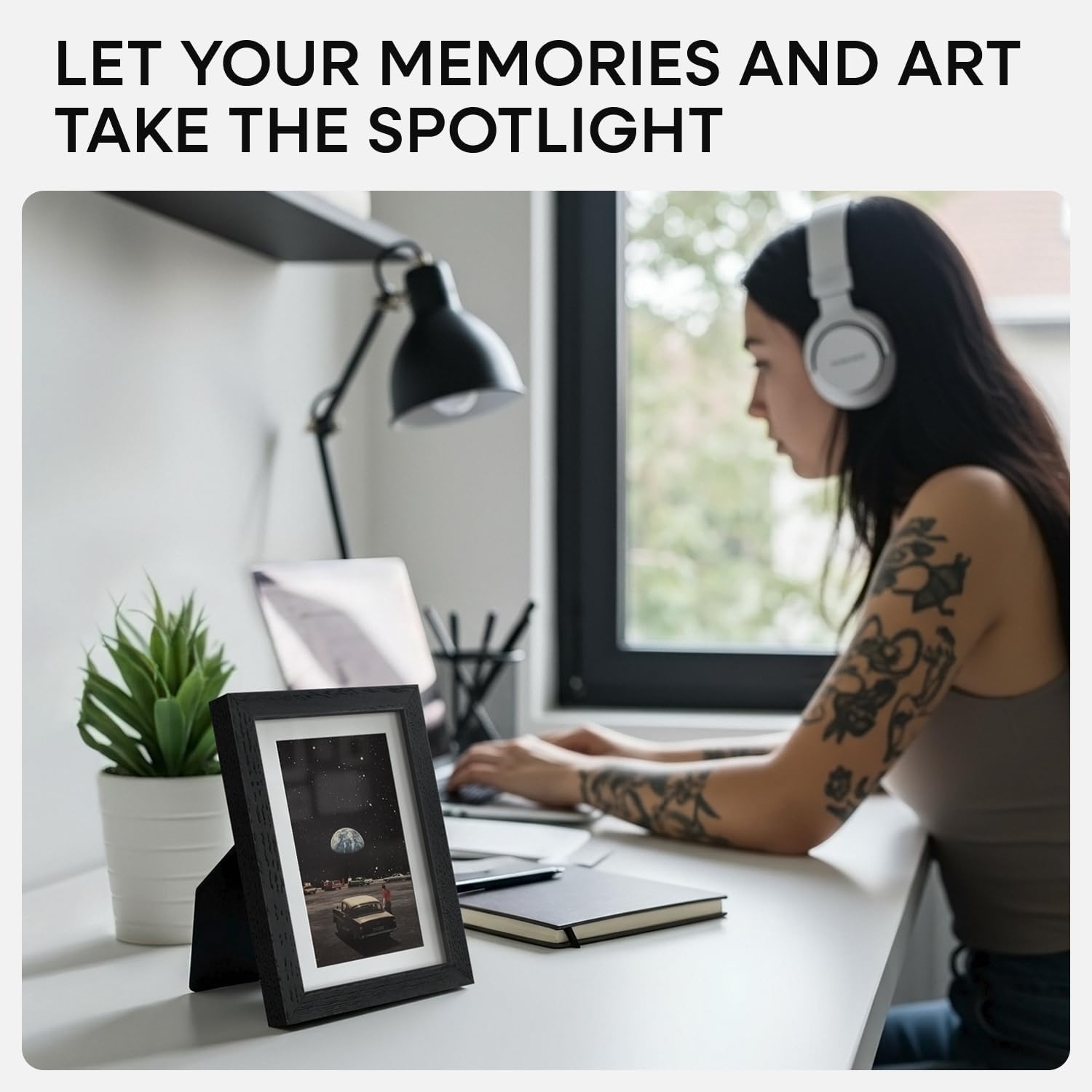 • DEEP MATTE BLACK, NOT SHINY OR FAKE Crafted in solid oak with a soft-touch matte finish, this frame offers a sleek black edge with real texture and high visual impact.