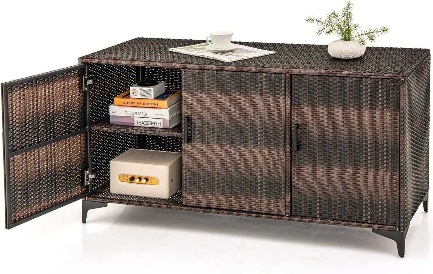• 3-Door Customized Storage: Equipped with 3 removable shelves, this rattan storage container can be customized to fit your different belongings. Moreover, 3 doors allow you to access your stored items with ease.