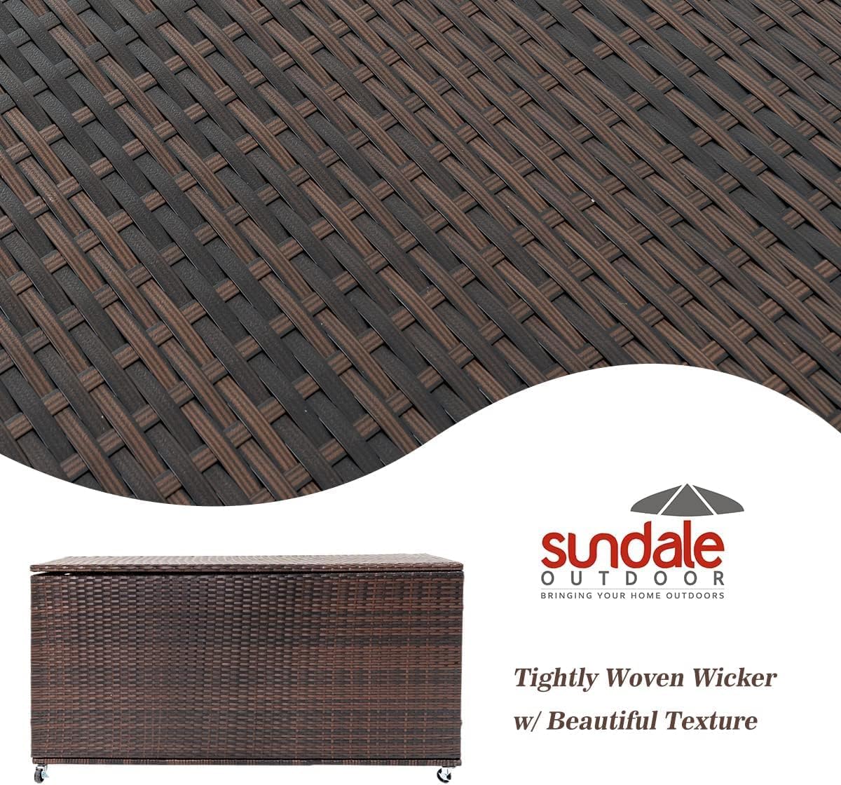• 【WHAT YOU GET】Outdoor 170 gallon storage container, waterproof lining with zip and all hardware. Sundale Outdoor premium wicker prevents the bar stools from absorbing water on rainy days, making them easy to clean and ideal for use on the balcony, front porch, or deck.