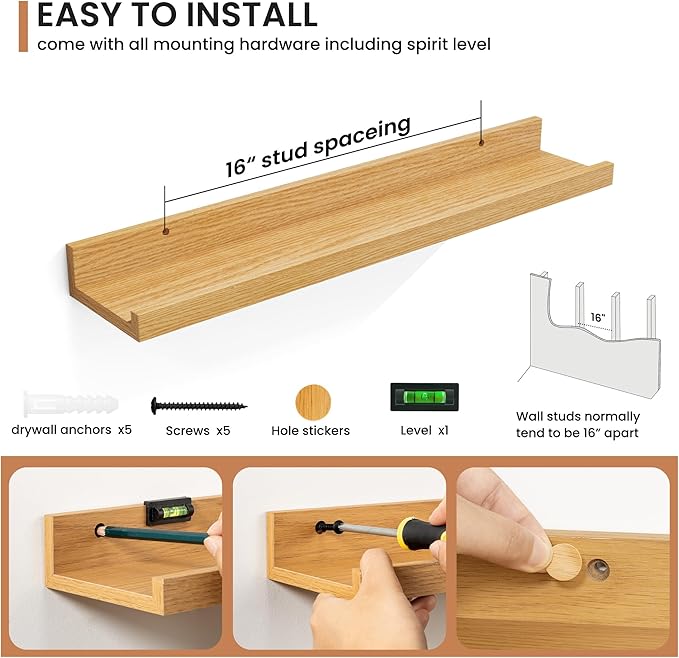 • Effortless Installation: Each shelf comes with pre-drilled holes and all necessary hardware, making installation quick and easy, so you can enjoy your new decor in no time.