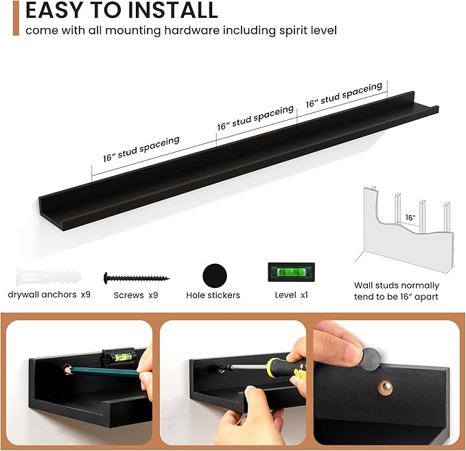 • Effortless Installation: Each shelf comes with pre-drilled holes and all necessary hardware, making installation quick and easy, so you can enjoy your new decor in no time.
