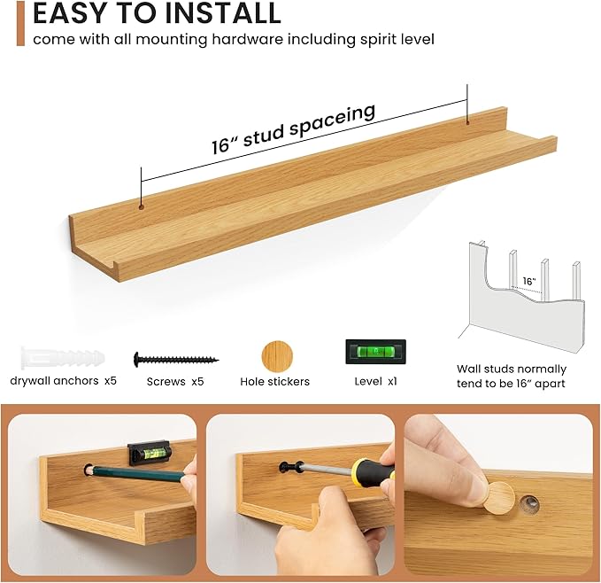 • Effortless Installation: Each shelf comes with pre-drilled holes and all necessary hardware, making installation quick and easy, so you can enjoy your new decor in no time.