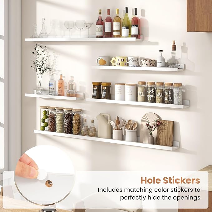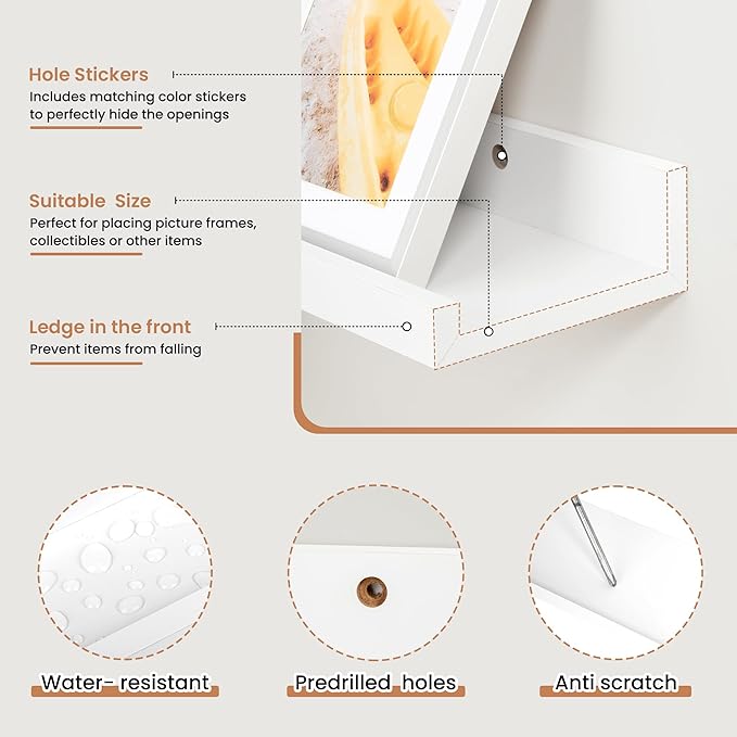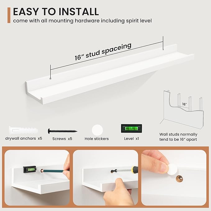• Effortless Installation: Each shelf comes with pre-drilled holes and all necessary hardware, making installation quick and easy, so you can enjoy your new decor in no time.