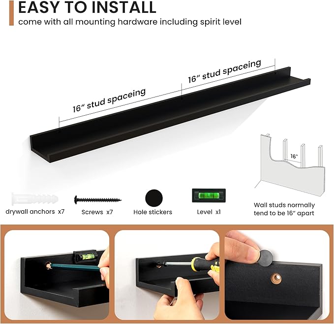 • Effortless Installation: Each shelf comes with pre-drilled holes and all necessary hardware, making installation quick and easy, so you can enjoy your new decor in no time.