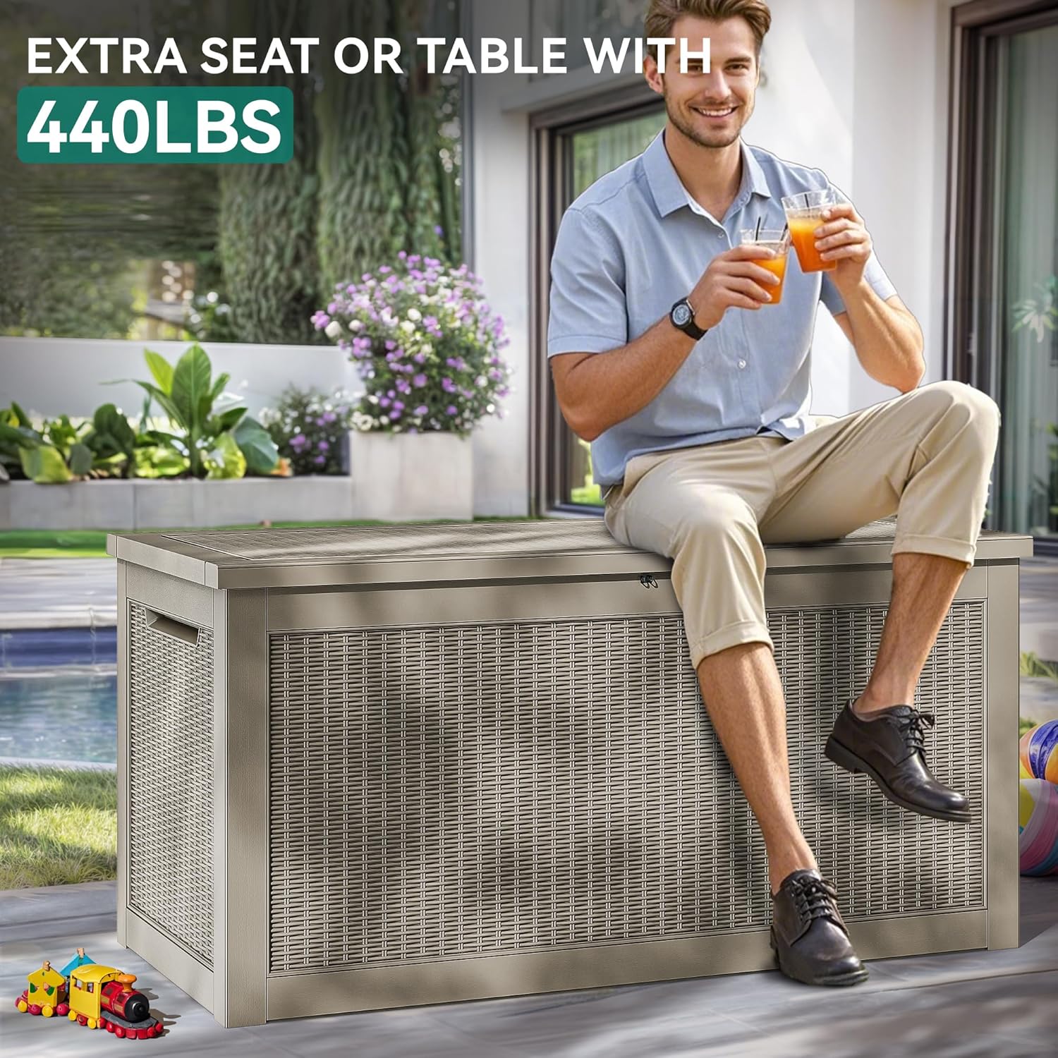 • Extra Seating or Table: The extra large outdoor storage deck box doubles as a comfortable bench seat with a weight capacity of 440pounds; Ideal for large patio gatherings or as a resting spot after yard work