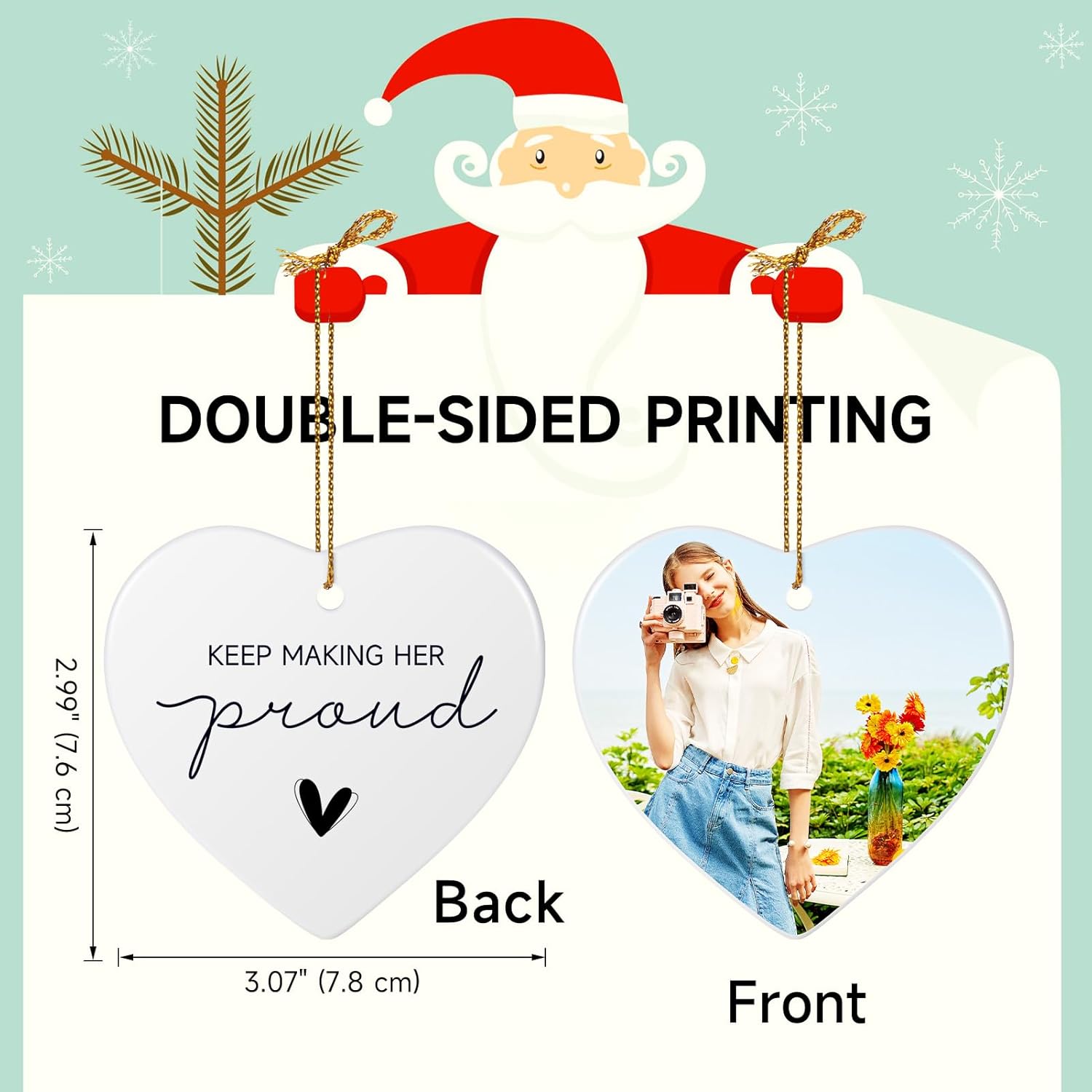 • 【Personalized Keep Making Her Proud Ornament】 You can choose to print the same custom text on both sides in the customization page, or you can choose to print the”Keep Making Her Proud”on the front side and upload images and text on the back side. Perfect Christmas gift, memorial gifts for loss of loved one. It's a warm and loving way to honor someone we love enduring presence in your heart