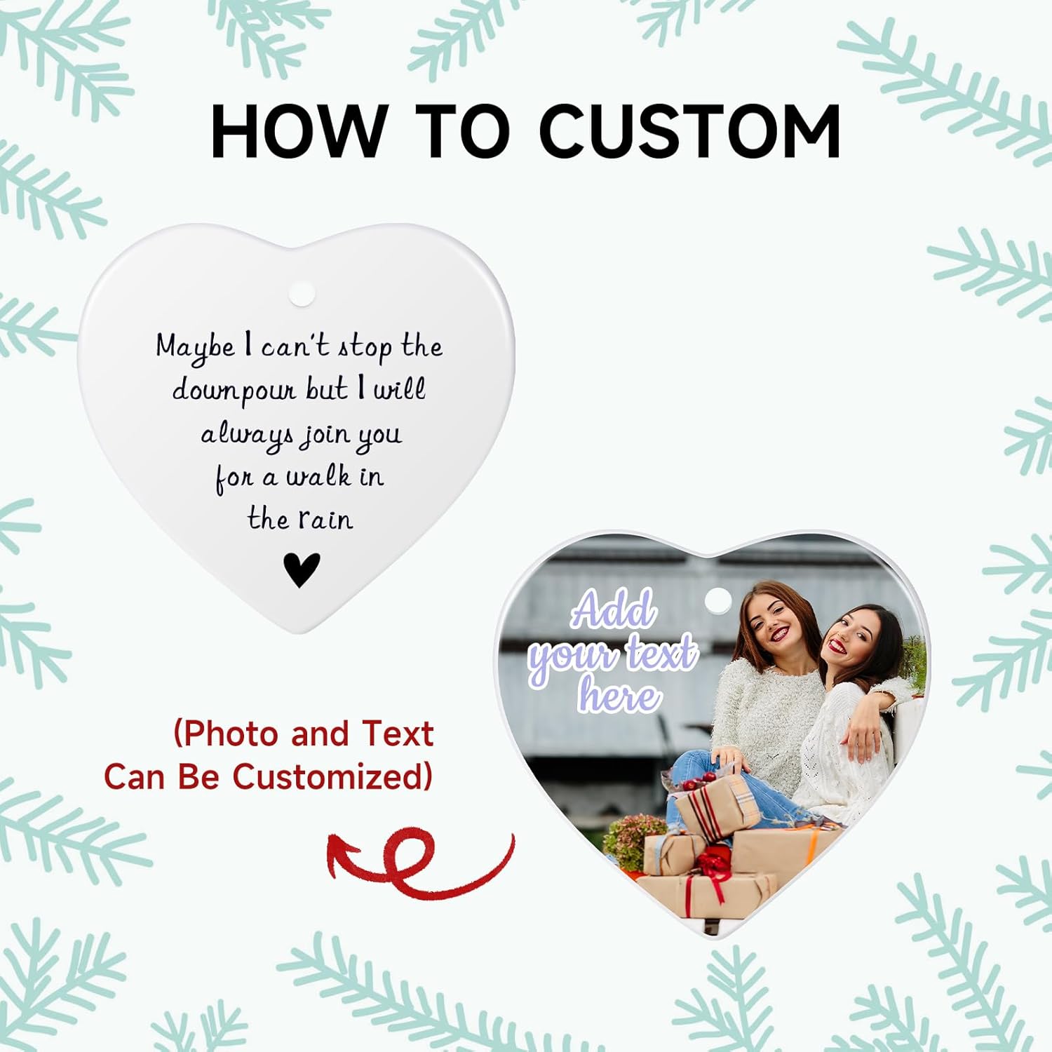 Personalized Maybe I Can't Stop The Downpour Ornament, Friendship Gifts for Women Best Friend Bestie Sister Brother, Tough Time Gift, Ceramic Heart Christmas Ornaments