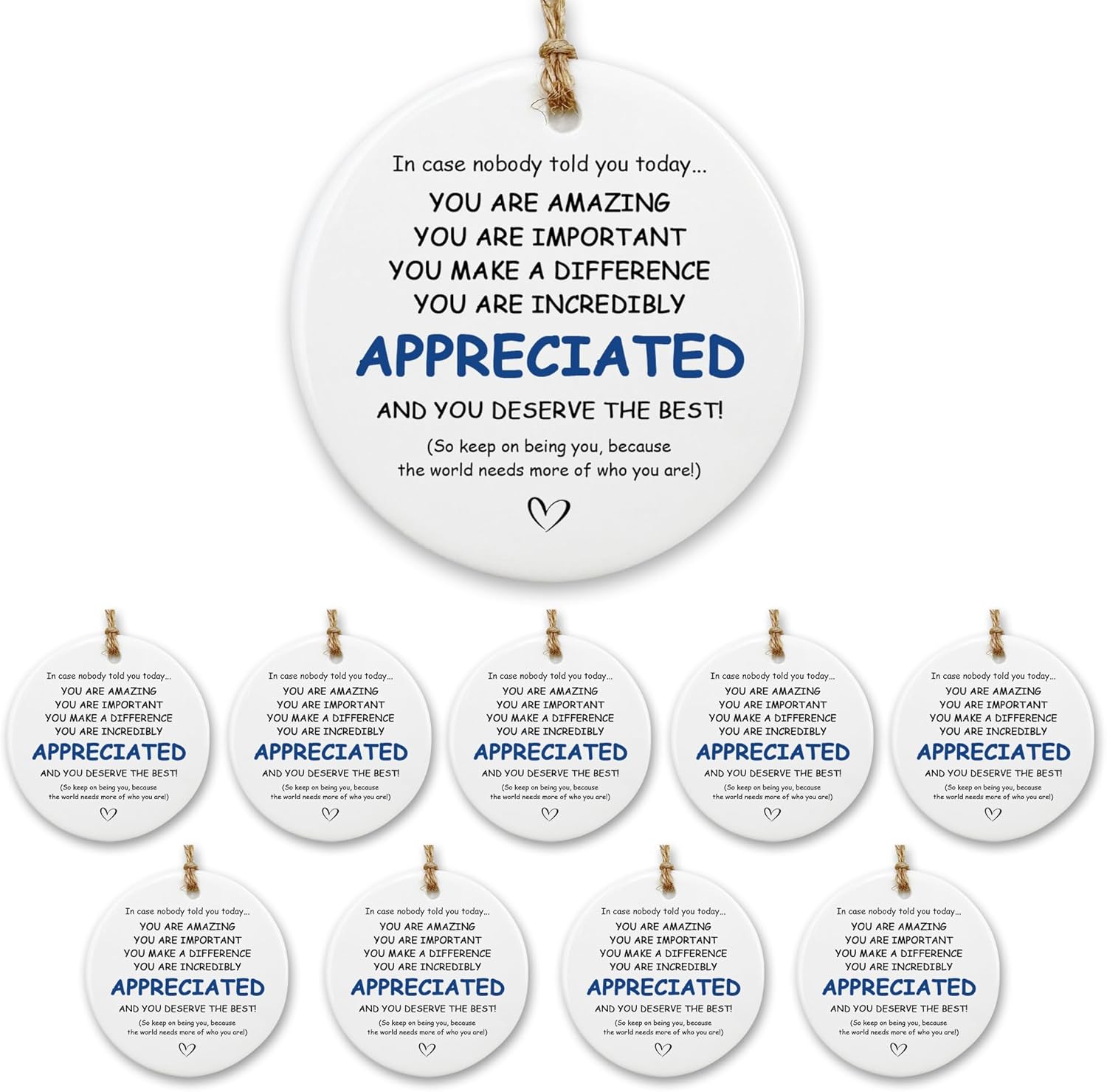 Thank You Gifts for Women & Men - 10 Pcs Appreciation Gift Set for Coworkers - Ceramic Ornament Set
