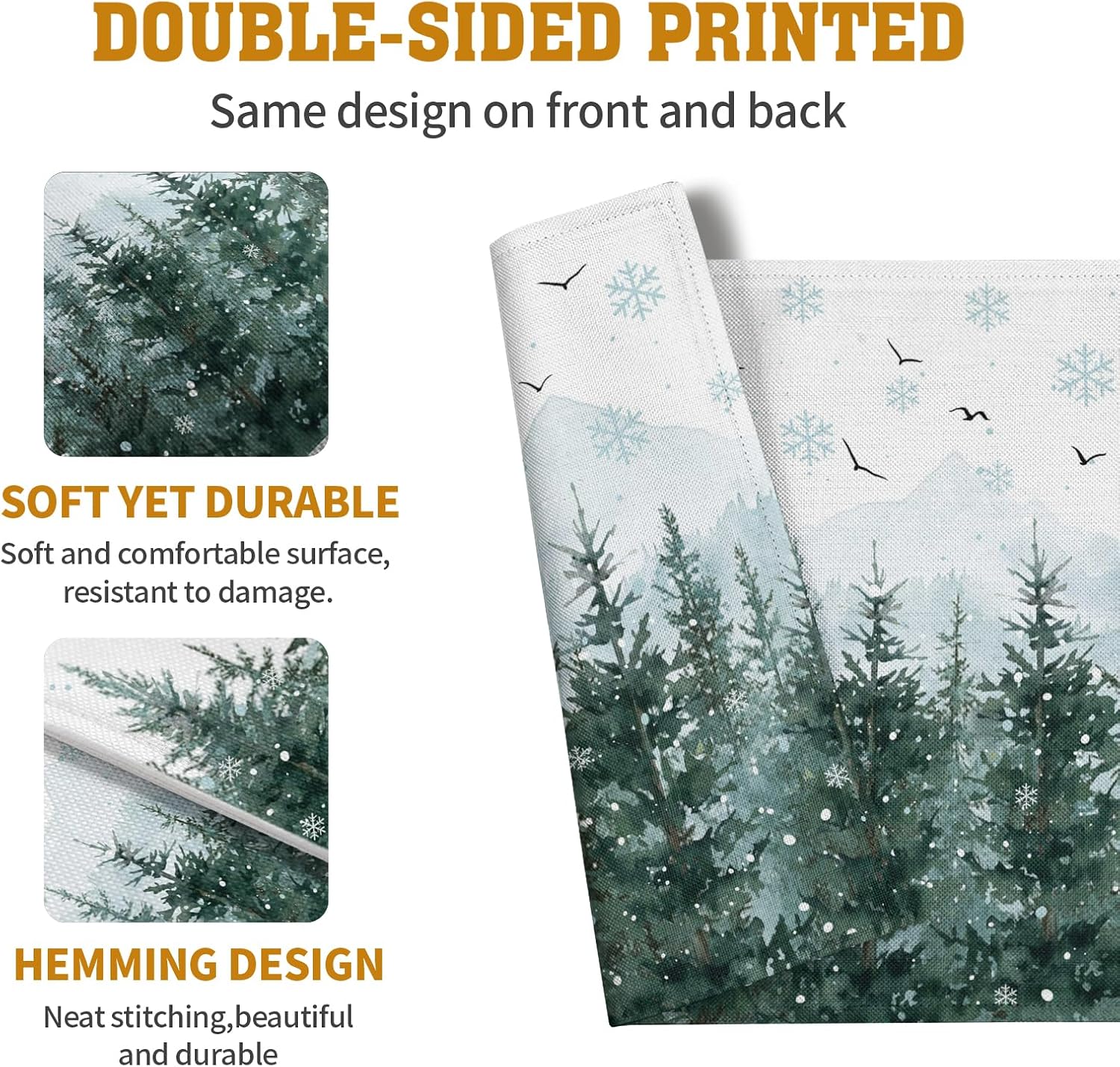 • PERFECTLY SIZE: The pine tree placemats set of 4, Each winter tree place mat is 18×12 inch (45cmx30cm) that can exactly fits your needs to use in all kinds of situations.