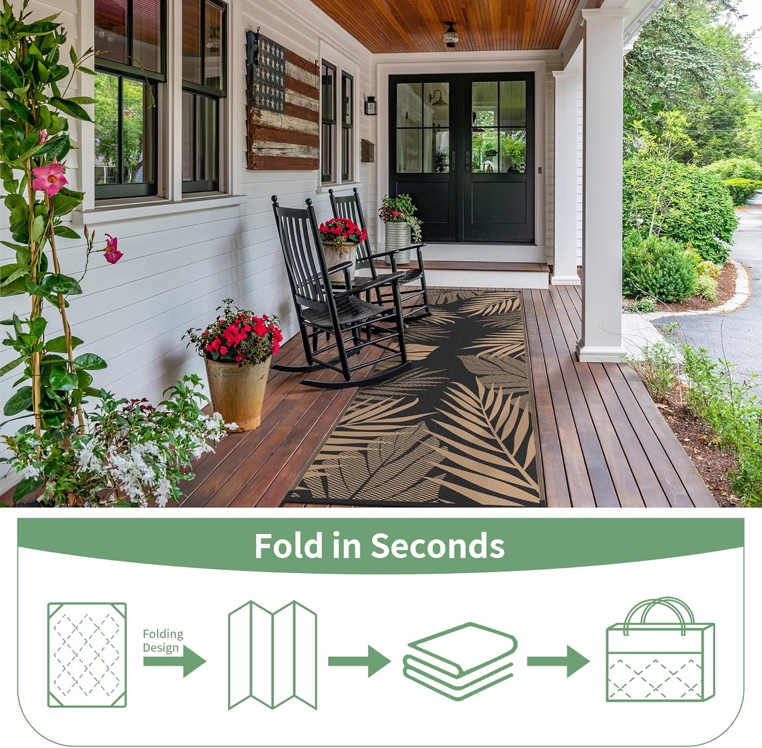 • Palm Leaf Design & Double-Sided Pattern: GENIMO reversible fall outdoor rug is designed with a double-sided pattern, completing the unique layout of multiple palm leaves. The 2 shades of black and brown achieve the ultimate fusion. Either side can blend perfectly with nature and look very full and comfortable, making it a versatile piece for fall decor
