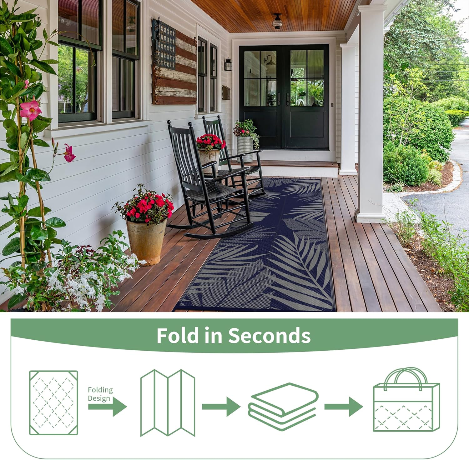 • Palm Leaf Design & Double-Sided Pattern: GENIMO reversible fall outdoor rug is designed with a double-sided pattern, completing the unique layout of multiple palm leaves. The 2 shades of blue and grey achieve the ultimate fusion. Either side can blend perfectly with nature and look very full and comfortable, making it a versatile piece for fall decor