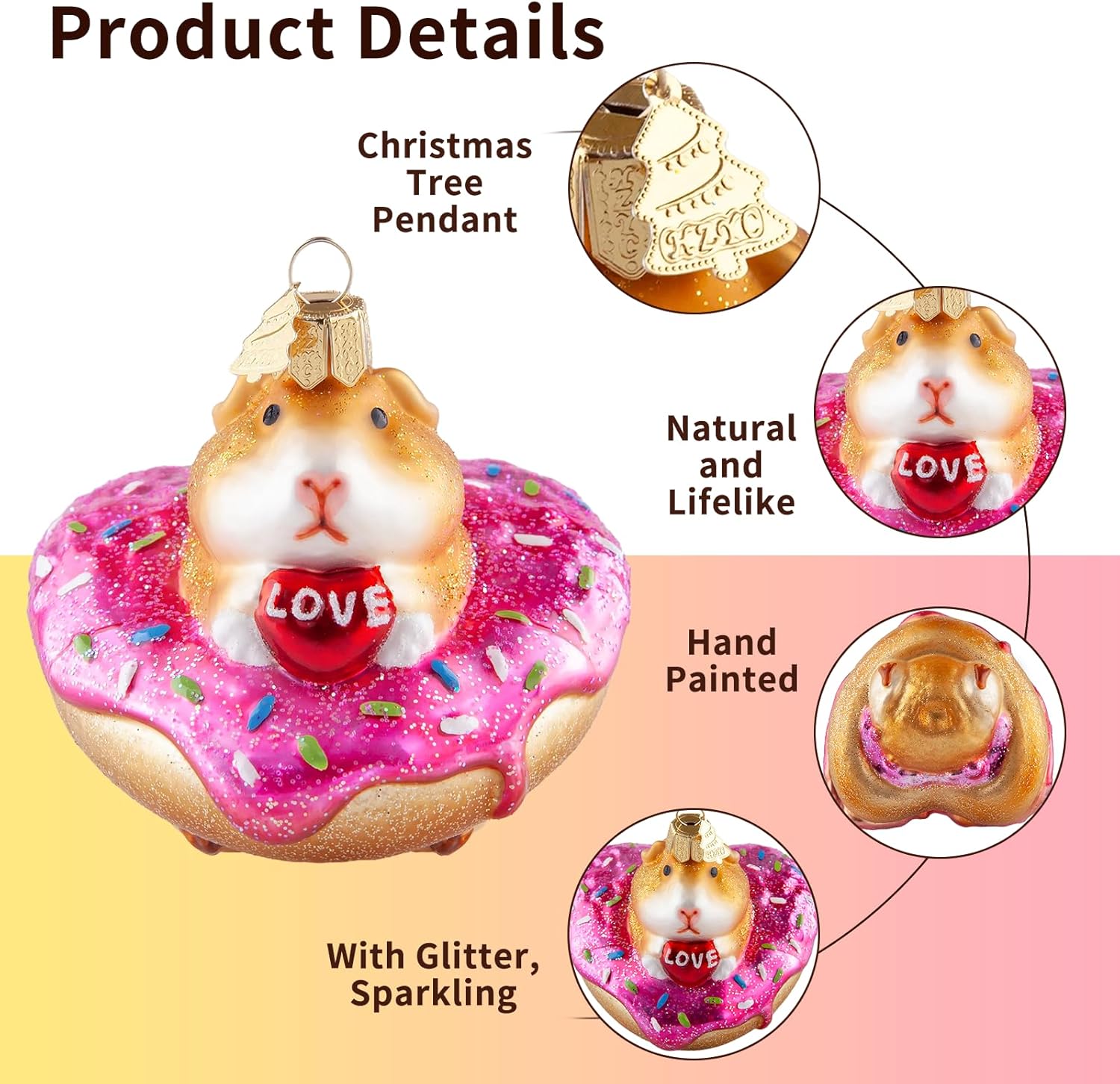 • Cute & Unique Design: Hand-blown glass christmas ornament adopts the image of a cute guinea pig. The golden guinea pig holds "love" and sits on a heart-shaped donut. It is cute and sweet. The whole is hand-painted, with exquisite craftsmanship, delicate and vivid image depiction. You can decorate any place you want to decorate, and believe it can be integrated well