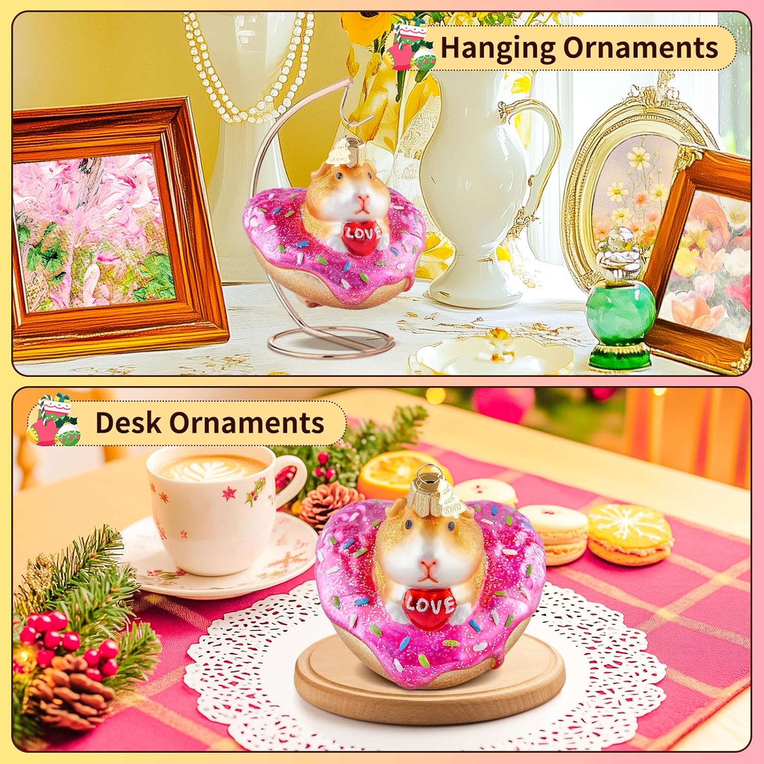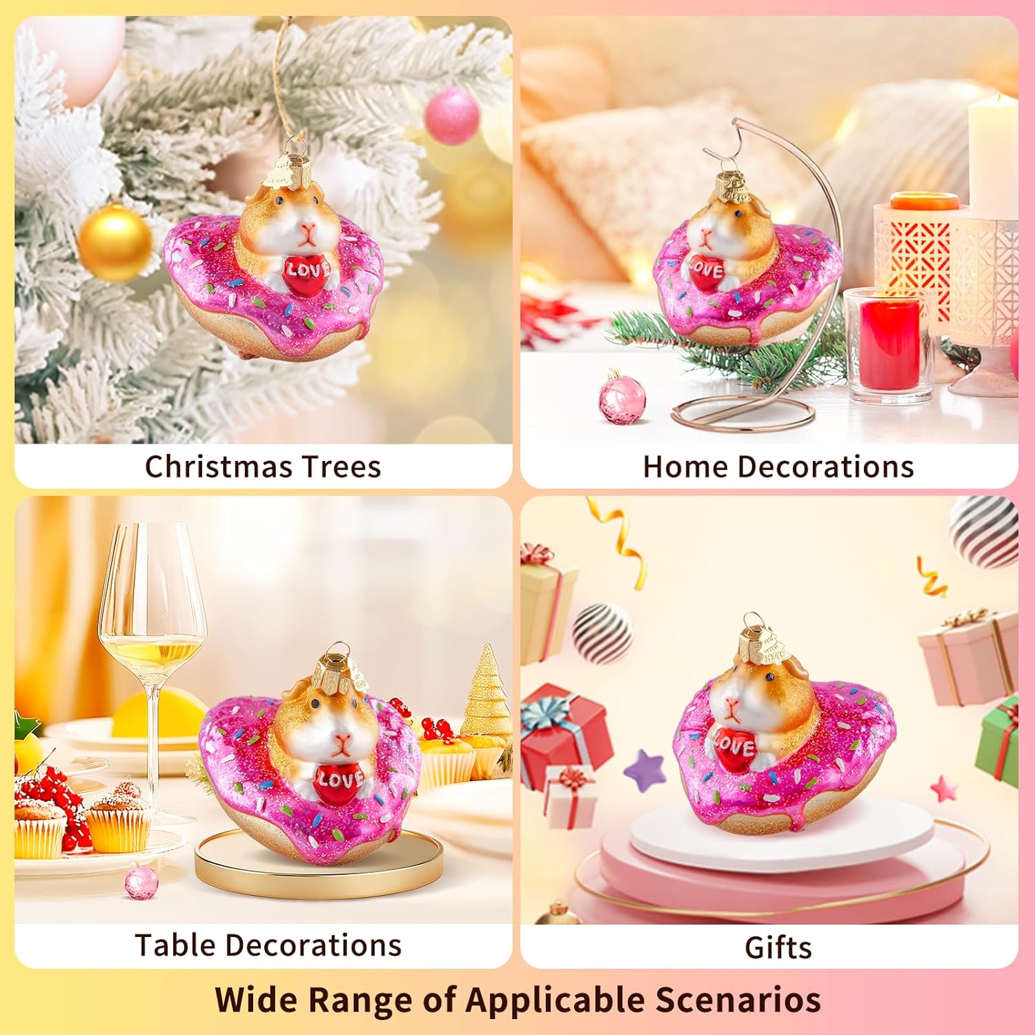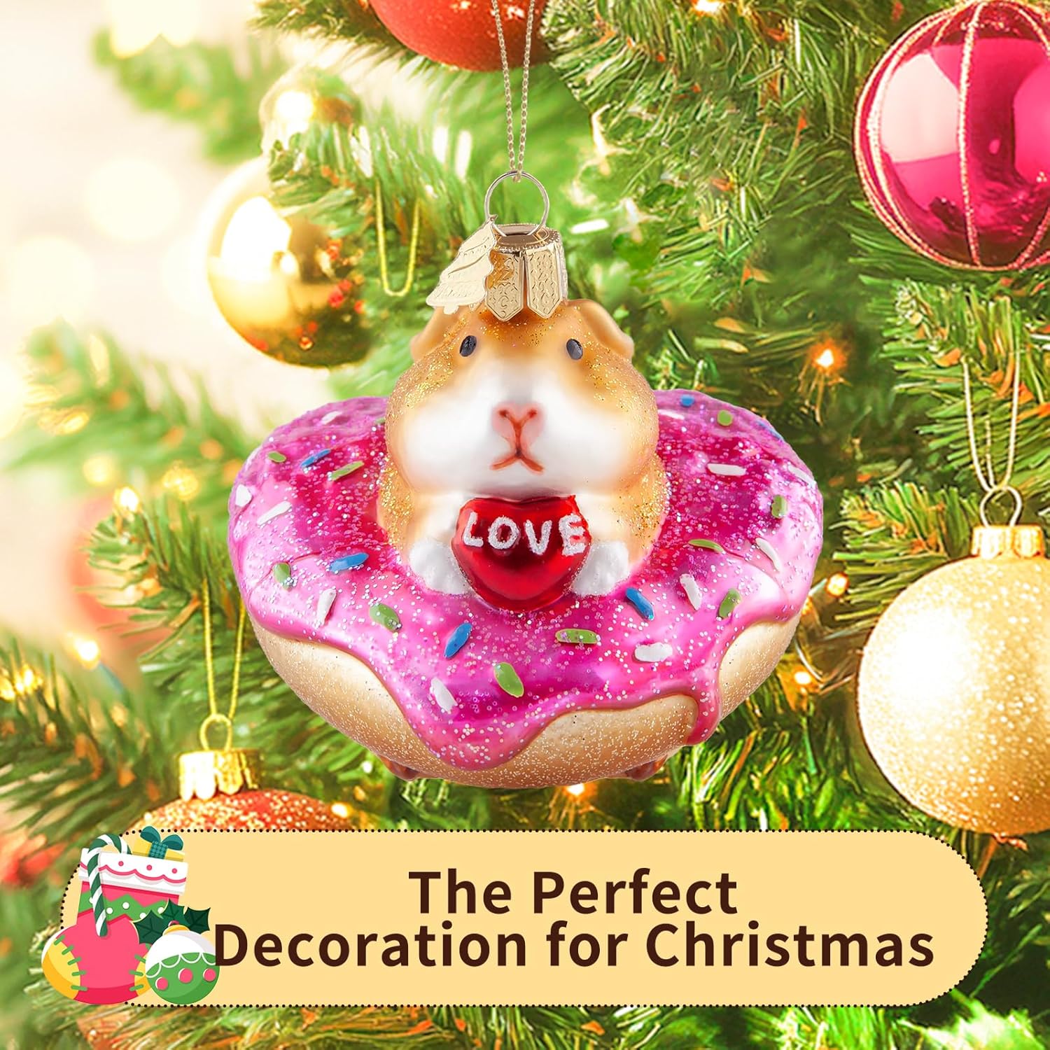 Christmas Tree Ornaments,Hand-Blown Glass Ornaments,Guinea Pig Collection Figurine Hanging Ornaments, Donut Pendant Ornament,Christmas Decorations for Xmas Tree Holiday Party Home Gifts