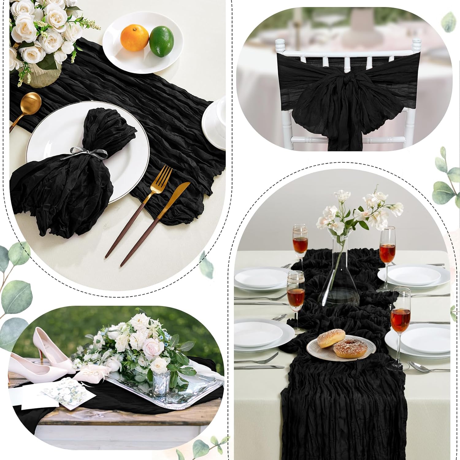 6 Pack Halloween Cheesecloth Table Runner 10FT Long Black Boho Gauze Table Runner Rustic Sheer Runner for Halloween Decoration Wedding Baby Shower Birthday Party Table Decor Thanksgiving Christmas