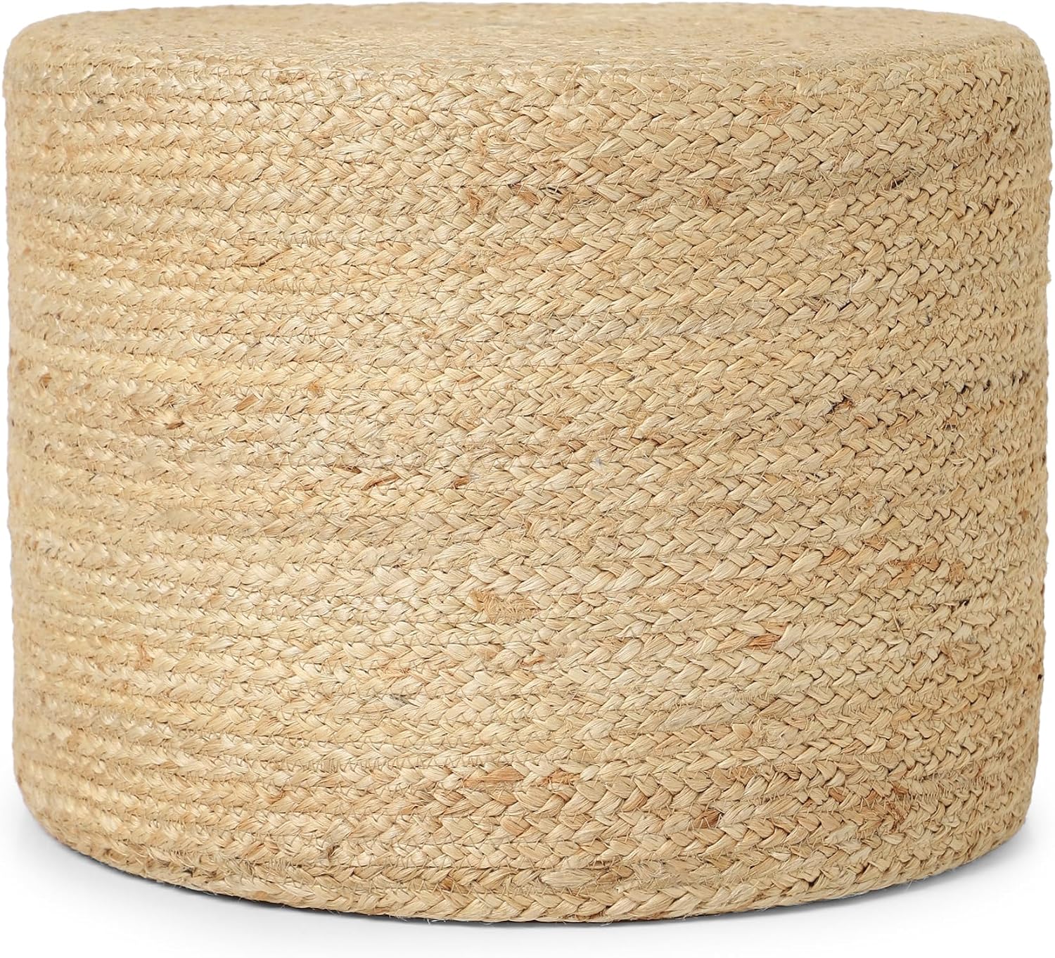 REDEARTH · Cylindrical Pouf Foot Stool Ottoman - Jute Braided Pouffe Poof Accent Sitting Footrest for Living Room, Bedroom, Nursery, Patio, Lounge & Other Rooms (Natural, 18"x18"x14")