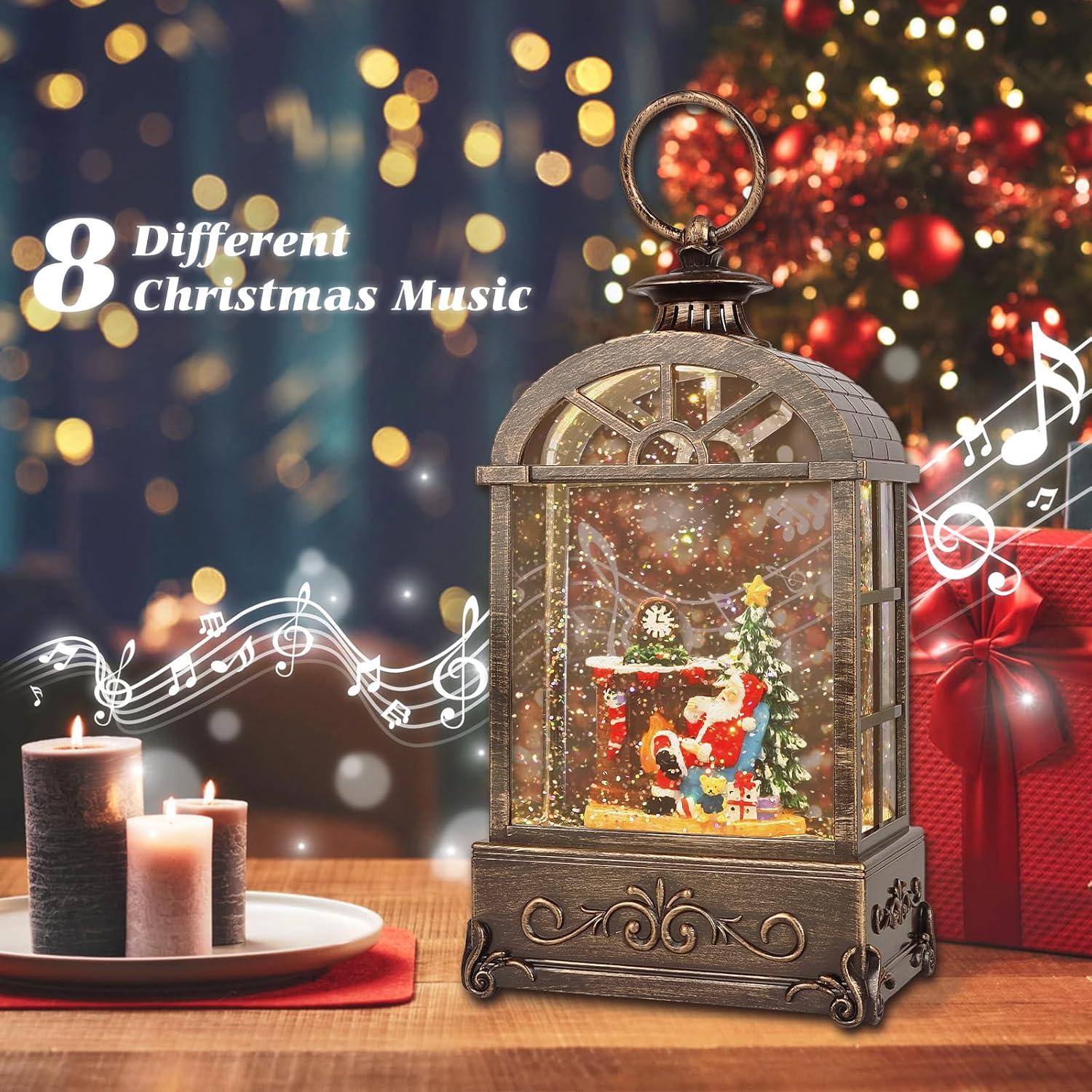 Christmas Snow Globes Lantern,Musical Snow Globe,Christmas Decorations Indoor for Home,Battery Or USB Powered,with 6 Hour Timer,Christmas Lantern for Festival Decoration,Santa Claus