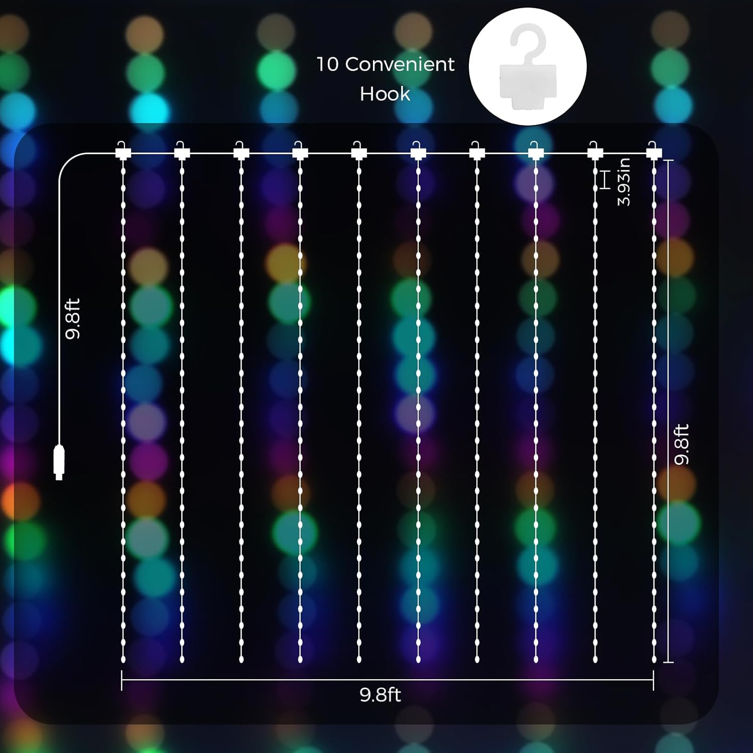 • Color Chainging Curtain Lights:Experience our 9.8 x 9.8 ft USB powered window curtain lights with the latest color-changing technology, offering different color choice to match any mood or occasion.