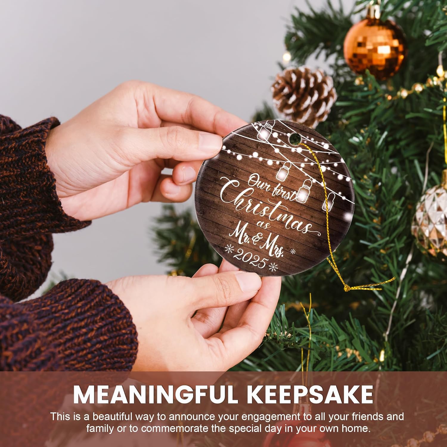 • Elegant Wedding Keepsake Ornaments: With its perfect size (2.75 inches in diameter) and delicate lanyard, this unique wedding ornament adds a touch of elegance to any space. The vintage inspired design creates a warm, cozy feel, making it a beautiful piece for your home or a heartfelt gift for someone special