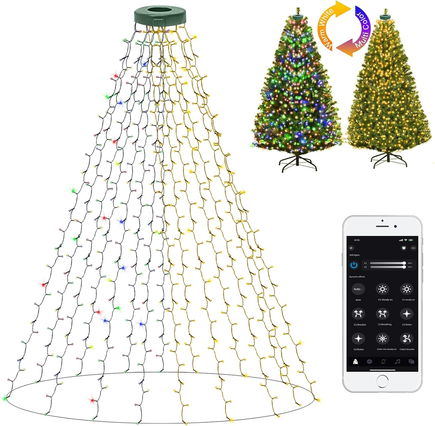 Smart Christmas Tree Lights with Ring, APP Control Music Sync 6.56Ft x 16 Lines String 400 LED Indoor Outdoor with DIY scenarios 17 Modes Multicolor Timing for Christmas Tree Decorations